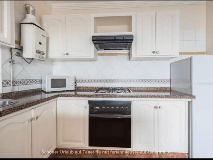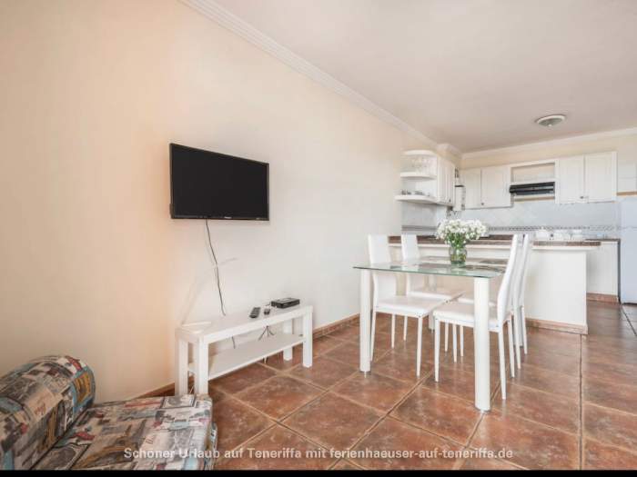 Im Dorf finden Sie zahlreiche Restaurants, Cafés, Bars, Geschäfte, einen Hafen sowie eine große Plaza und Einkaufsmöglichkeiten. Vom Hafen aus können Sie Bootstouren nach Los Gigantes unternehmen, um die beeindruckenden Steilklippen zu sehen. Die Promenade ist nur 200 Meter von der Ferienwohnung entfernt, ebenso der Yachthafen. Der Strand liegt etwa 300 Meter entfernt und ist bequem zu Fuß erreichbar.