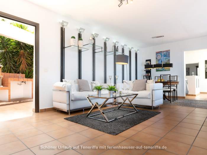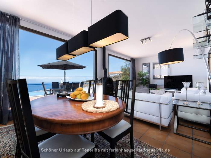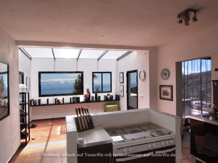 Das Haus liegt oberhalb von Los Gigantes und Playa de la Arena, in einer Region, die mit bis zu 350 Sonnentagen im Jahr verwöhnt. Es befindet sich auf 450 Metern Höhe über dem Meer, was für angenehme Temperaturen und eine ruhige Atmosphäre sorgt. Die Eigentümer leben selbst mit ihrem Hund Lily auf der Finca, die das Gelände bewacht. Das Wasser wird aus einem benachbarten Tiefbrunnen bezogen, während der Strom durch Solaranlagen direkt von der Sonne erzeugt wird.