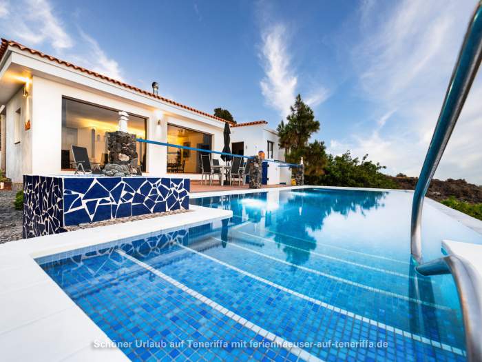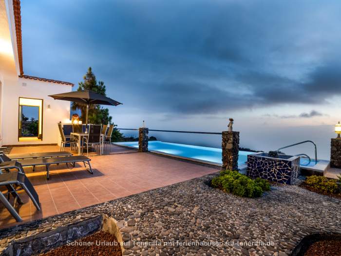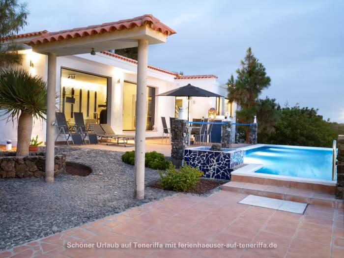 Ein Urlaub abseits der Touristenmassen ist hier möglich. Das ruhig und ländlich gelegene Ferienhaus befindet sich in der Nähe eines Naturschutzgebietes in Chio, Guia de Isora. Es steht auf einer 3 Hektar großen Finca, eingebettet in eine idyllische Natur, und liegt auf einem privaten Grundstück von 2.000 m². Von den großzügigen Terrassen aus bietet sich ein atemberaubender Blick auf das Meer sowie auf die Nachbarinsel, was den Aufenthalt zu einem besonderen Erlebnis macht.