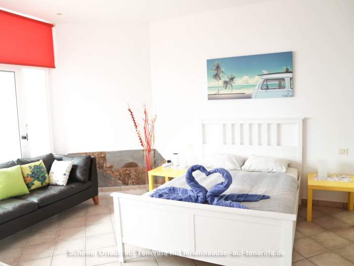 Dieses helle und charmante Ferienhaus befindet sich in der sonnigen Ortschaft Abades im Süden Teneriffas. In nur sieben Minuten zu Fuß gelangen Sie zum nahegelegenen Strand, der in einer kleinen Bucht liegt und zum Baden, Sonnen und Entspannen einlädt. Der Ort bietet eine gute Auswahl an Restaurants und gastronomischen Einrichtungen, darunter auch ein bekanntes veganes Restaurant. Ein Mietwagen ist hier zwar praktisch, aber nicht zwingend notwendig, da alles Wichtige auch zu Fuß erreichbar ist.