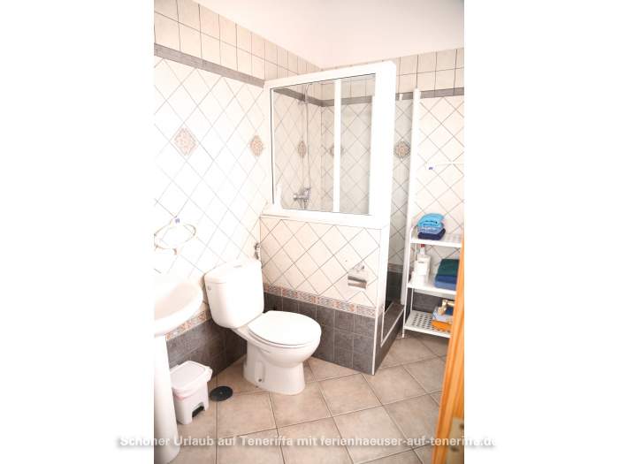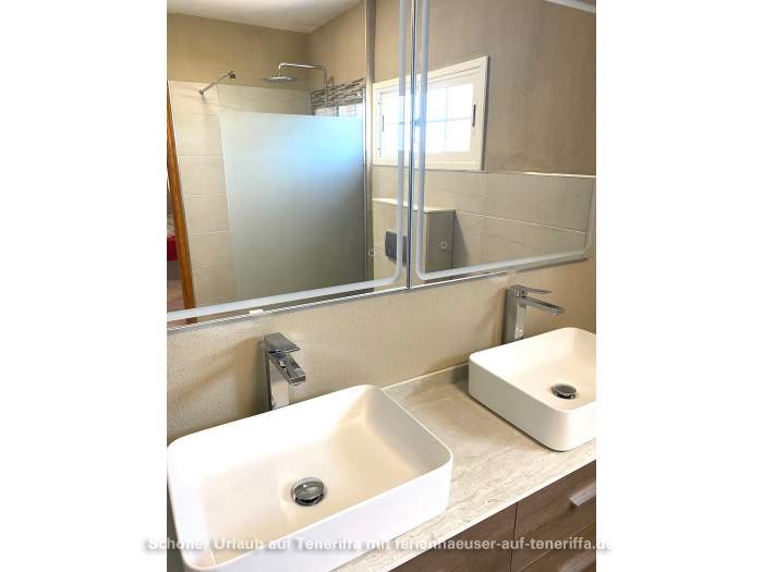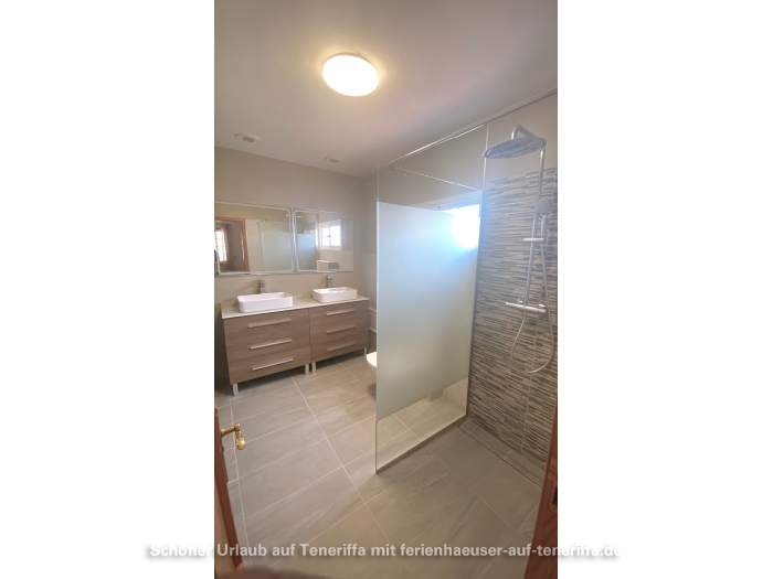 Die drei Badezimmer sind jeweils mit Waschbecken, WC und Duschkabinen ausgestattet, was Komfort für alle Gäste garantiert.