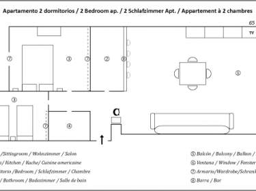 Diese schönen und freundliche eingerichteten Apartments haben 2 separate Schlafzimmer mit je 2 Einzelbetten, eine gemütlichen Wohnraum mit SAT-TV, einen Essbereich, eine, für Selbstversorger umfangreich ausgestattete Küche und ein Duschbad.