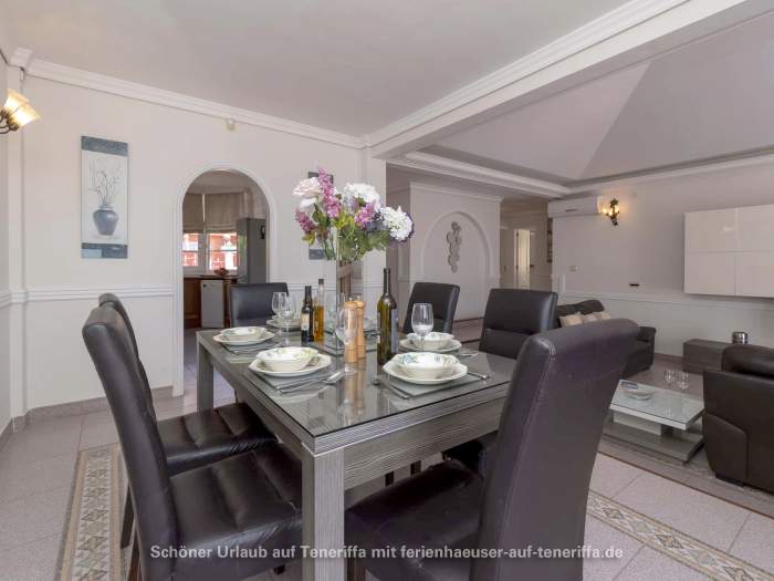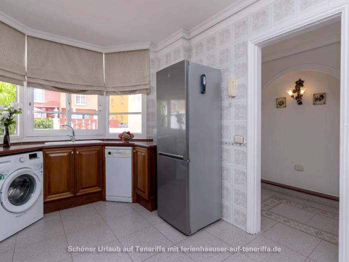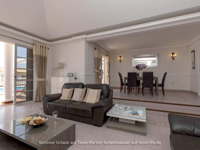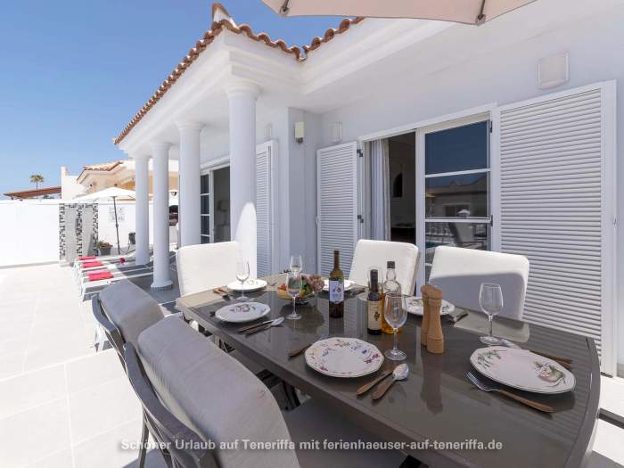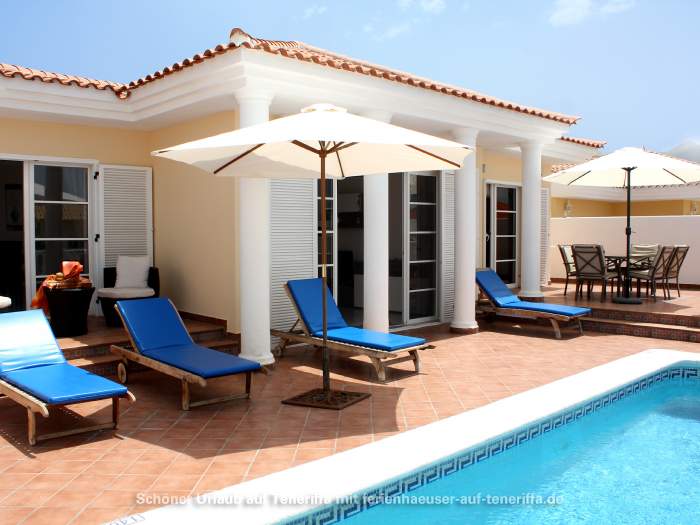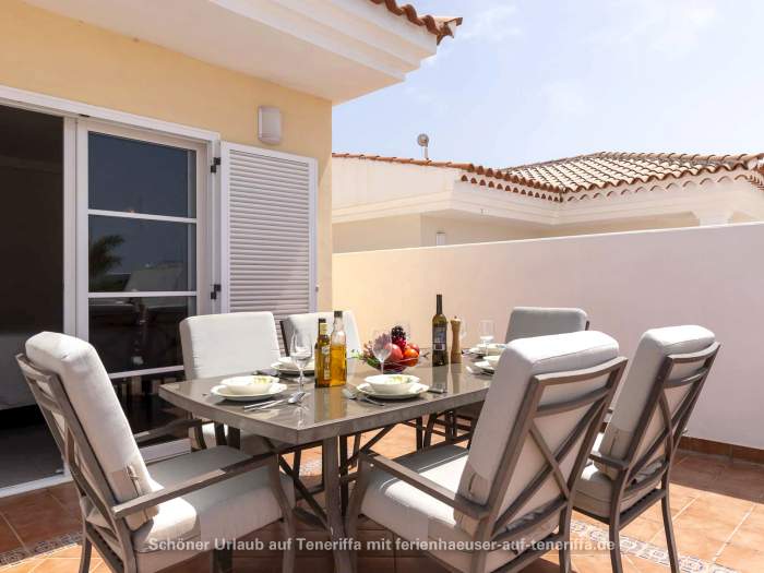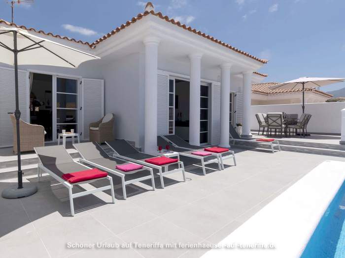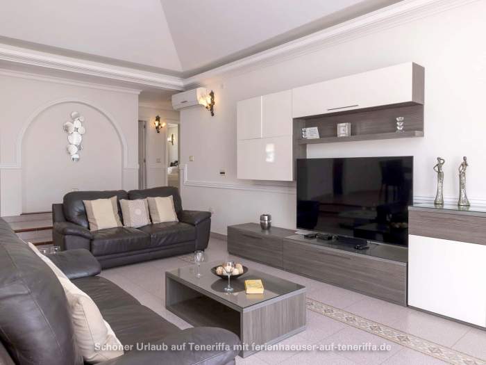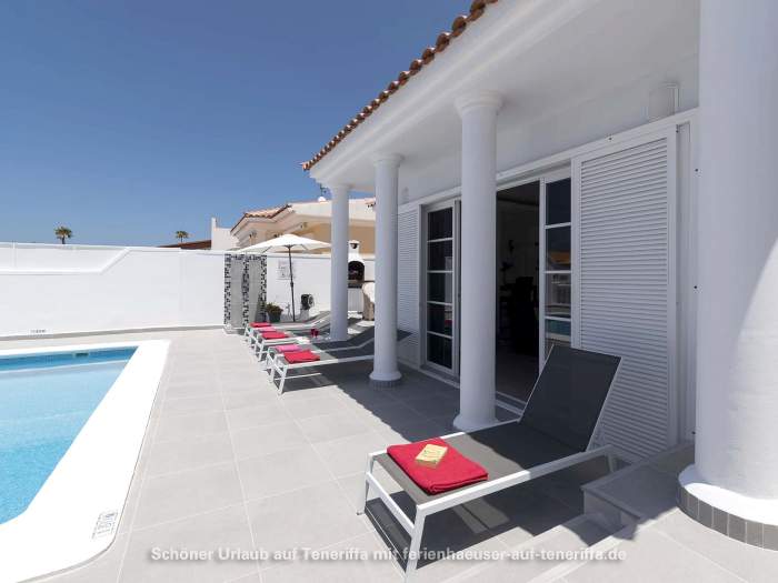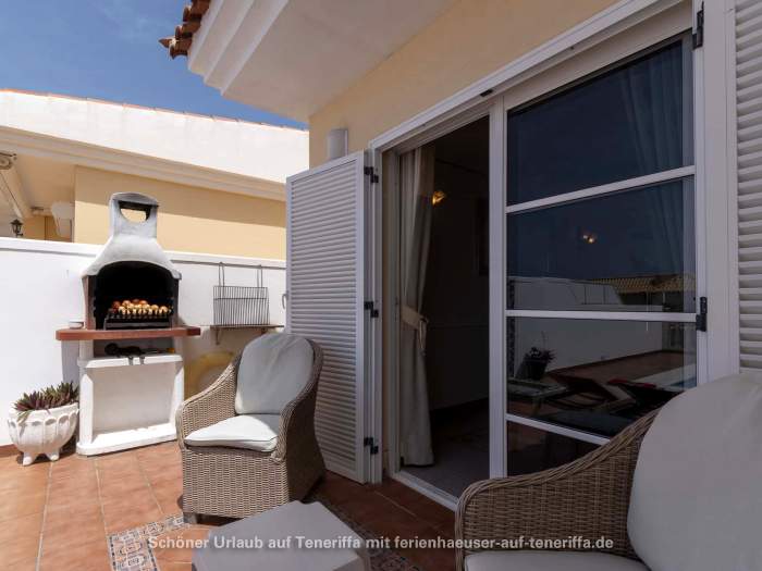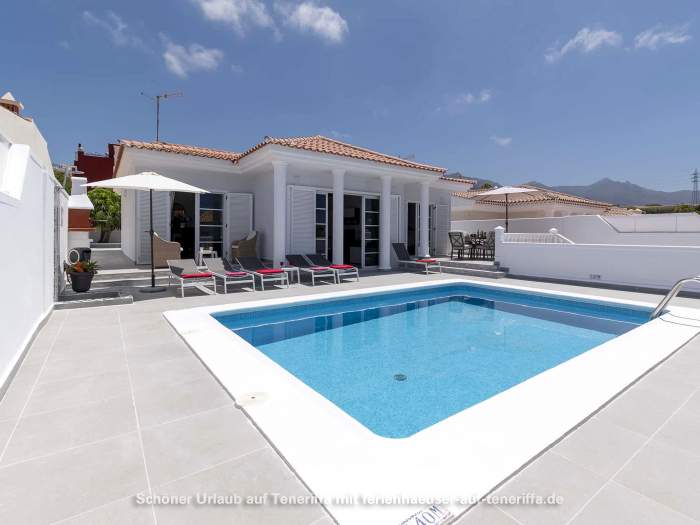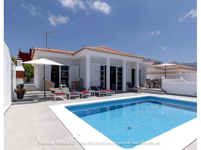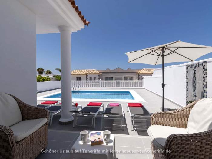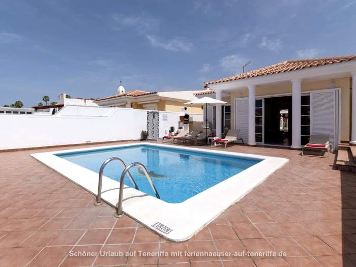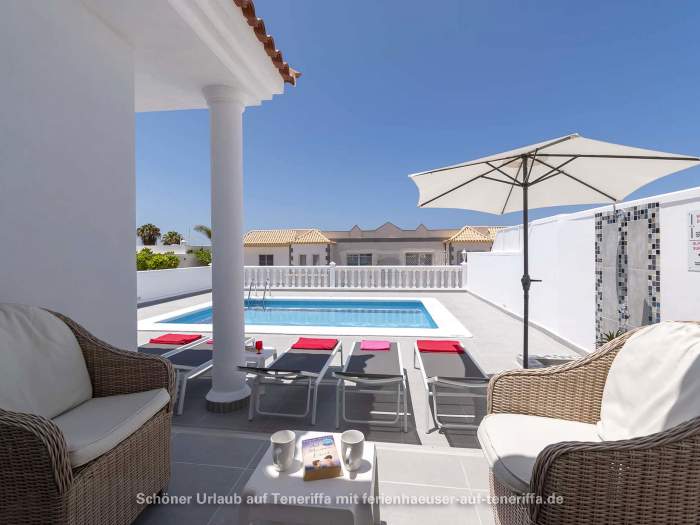 In Callao Salvaje, an der südwestlichen Küste Teneriffas, befindet sich diese gepflegte Villa mit einem beheizten Privatpool. Ideal für alle, die Ruhe und Entspannung suchen, ohne auf Komfort zu verzichten. Der Pool wird von Ende Oktober bis Anfang April auf angenehme 24°-26°C beheizt, sodass Sie das Wasser auch in den kühleren Monaten genießen können. Auf der teilweise überdachten Sonnenterrasse stehen Sonnenliegen und Sitzgelegenheiten bereit, um die Sonne zu genießen oder einfach zu entspannen. Für gesellige Abende ist ein Barbecuegrill vorhanden.