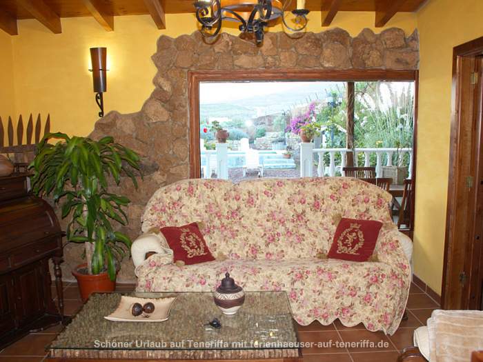 Mit 60 m² bietet die Ferienwohnung Platz für bis zu fünf Personen. Der Wohnbereich mit integrierter Küche ist komfortabel ausgestattet mit einem Sofa, Esstisch, Minibar, Sat-TV (mit internationalen Kanälen), DVD-Player, WLAN, Safe, Klimaanlage mit Heizfunktion sowie einer kleinen Bibliothek. Die Küche lässt keine Wünsche offen: Kühlschrank mit Gefrierfach, Mikrowelle, Cerankochfeld, Backofen, Kaffeemaschine, Wasserkocher, Toaster, Mixer und zahlreiche Kochutensilien sind vorhanden. Auch eine Waschmaschine ist inklusive.