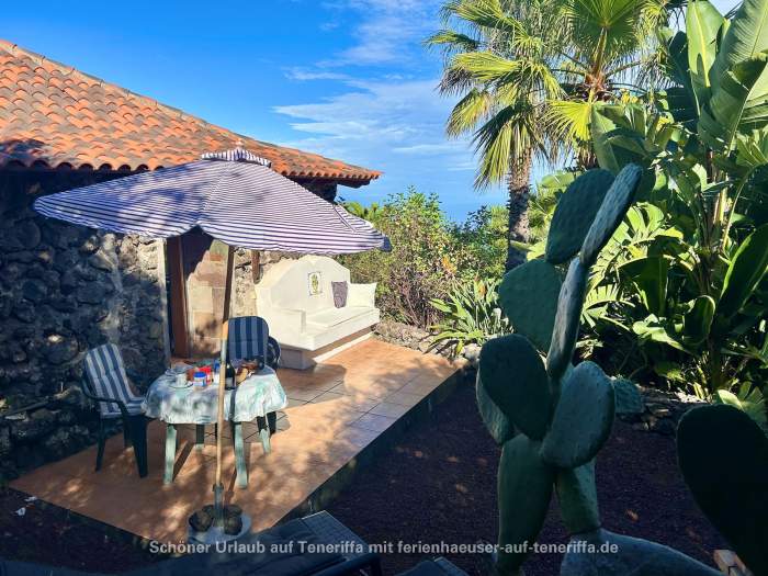 In dem kleinen Dorf La Vega bei Icod de los Vinos erwartet Sie diese charmante, rustikale Gartenfinca mit atemberaubendem Blick auf das Meer. Auf dem Grundstück befinden sich zwei weitere Häuser, von denen eines ebenfalls gemietet werden kann, ideal für Familien oder Freunde, die gemeinsam Urlaub machen möchten.
