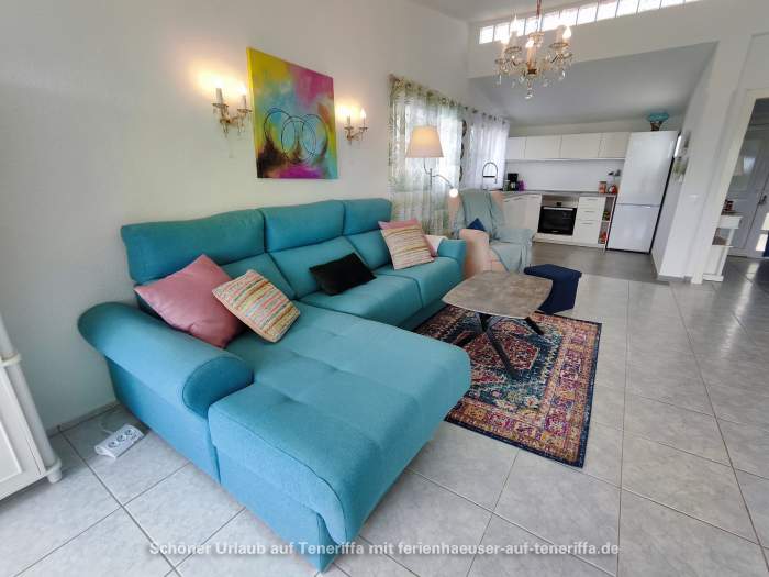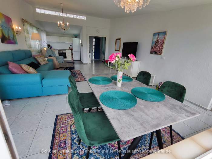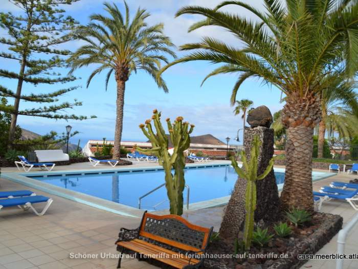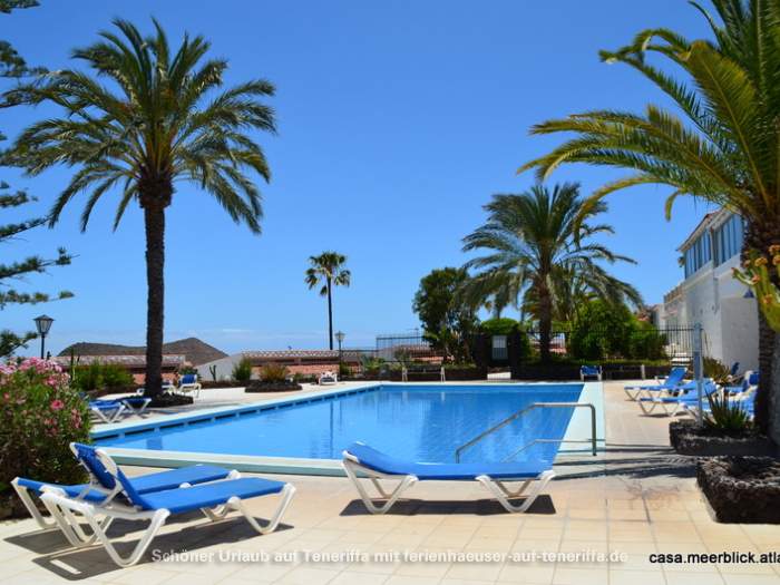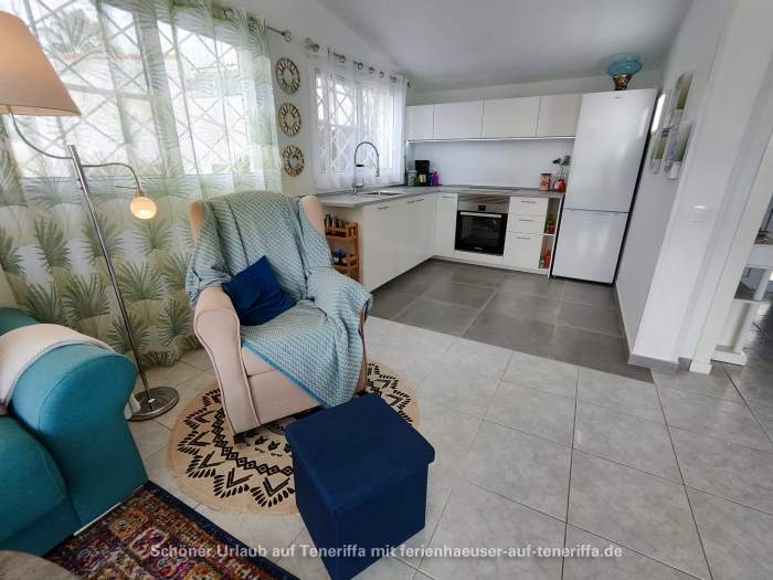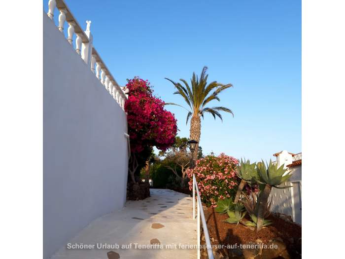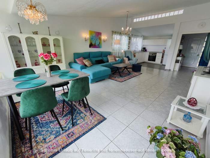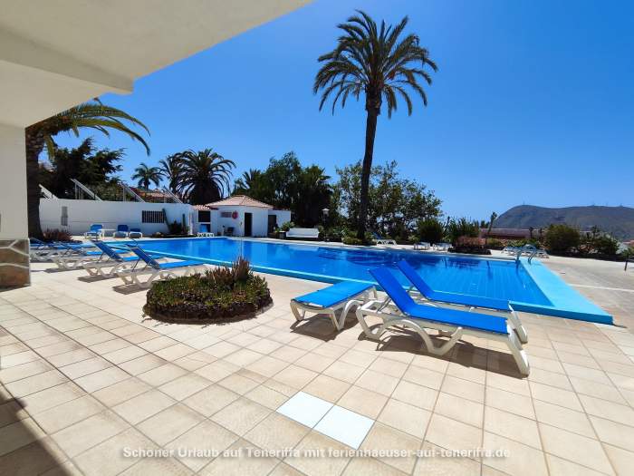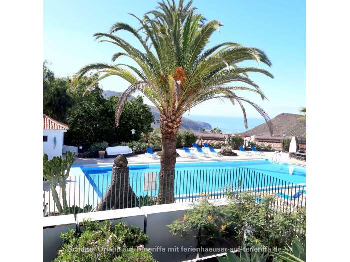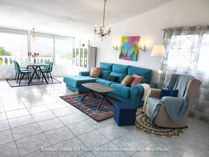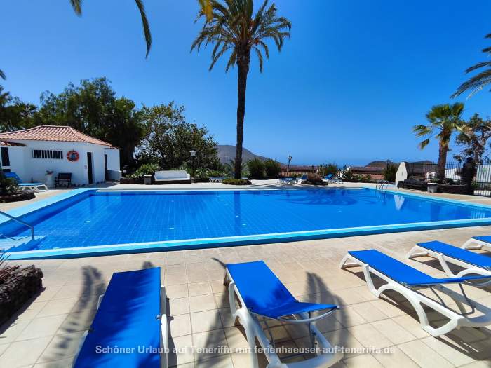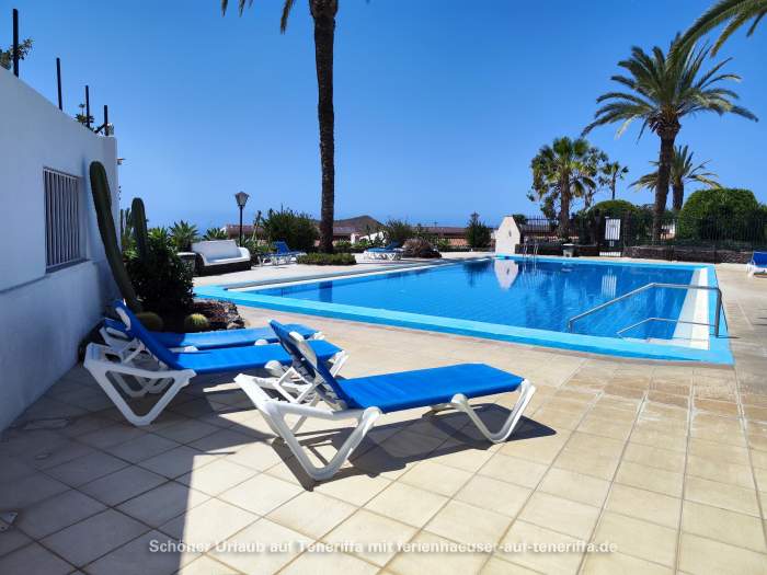 Dieses helle Ferienhaus erstreckt sich über 82 m² und bietet einen komfortablen Rückzugsort mit drei großzügigen Terrassen, einem üppigen tropischen Garten sowie einem beeindruckenden Meerblick. Der gemeinschaftliche beheizte Pool (10 x 18 Meter) lädt zum Erfrischen und Entspannen ein, wobei Sonnenliegen kostenfrei zur Verfügung stehen. Von hier aus genießen Sie einen atemberaubenden Ausblick auf Los Cristianos, Playa de las Américas sowie die umliegenden Berge, was den Aufenthalt zu einem unvergesslichen Erlebnis macht.