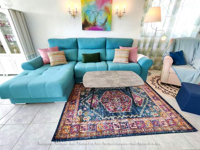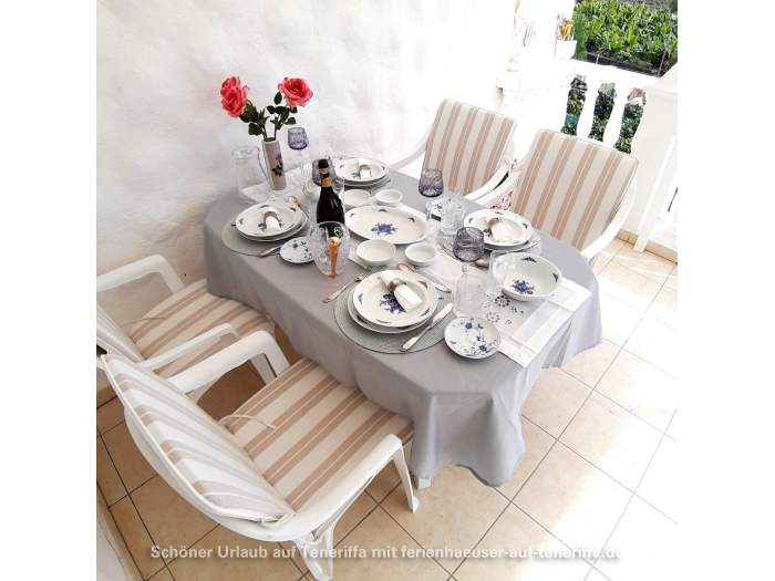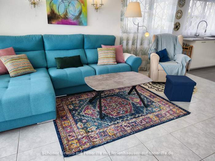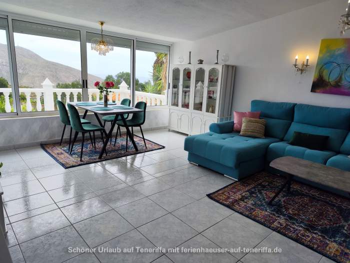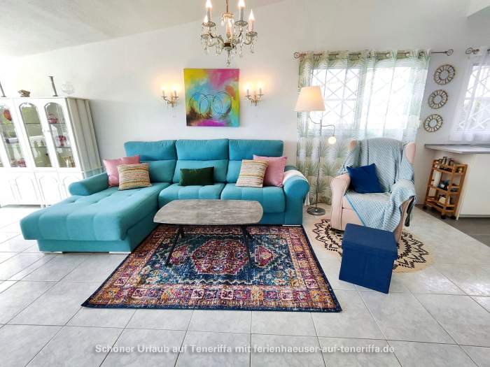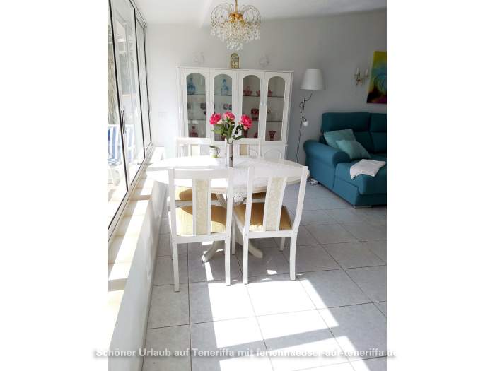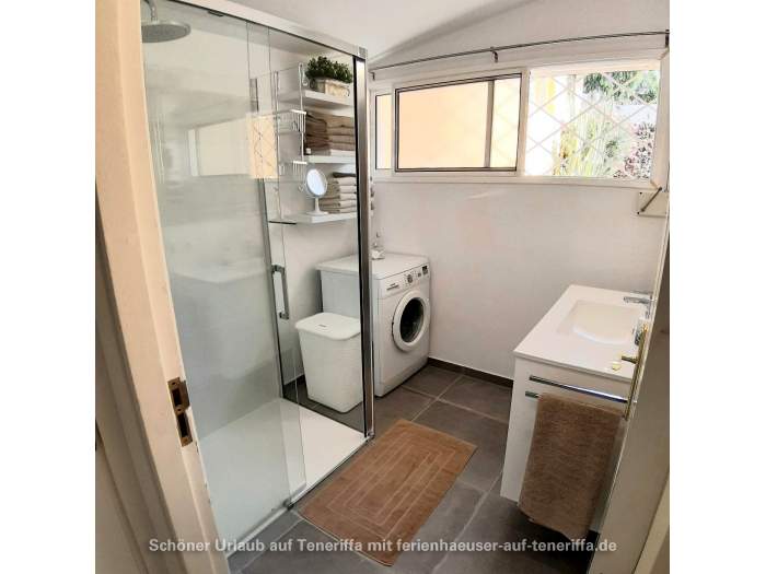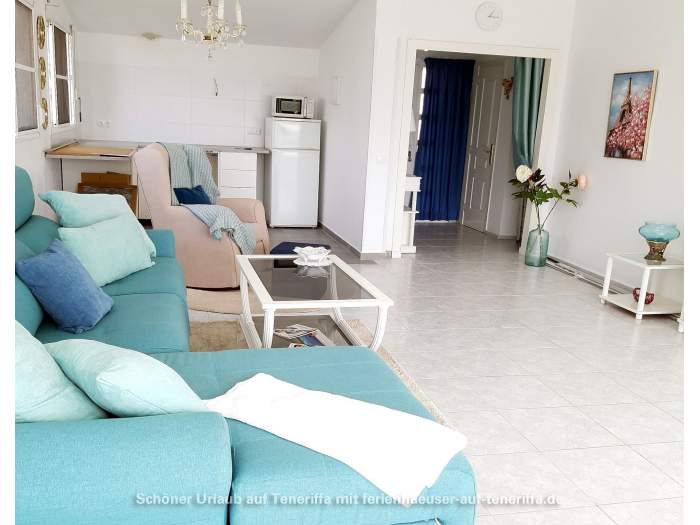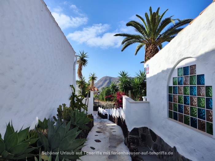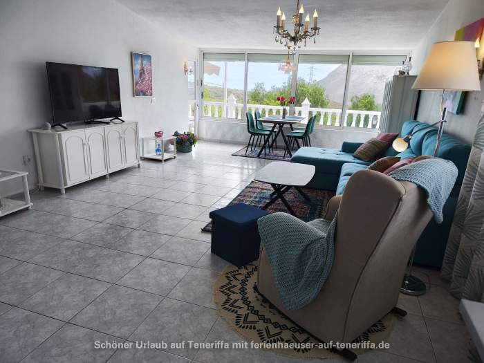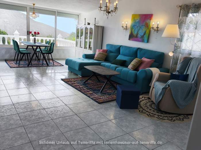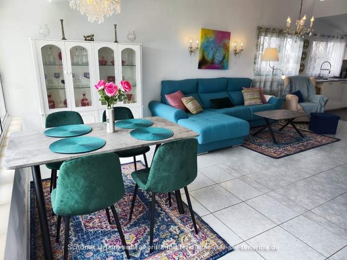 Dieses helle Ferienhaus erstreckt sich über 82 m² und bietet einen komfortablen Rückzugsort mit drei großzügigen Terrassen, einem üppigen tropischen Garten sowie einem beeindruckenden Meerblick. Der gemeinschaftliche beheizte Pool (10 x 18 Meter) lädt zum Erfrischen und Entspannen ein, wobei Sonnenliegen kostenfrei zur Verfügung stehen. Von hier aus genießen Sie einen atemberaubenden Ausblick auf Los Cristianos, Playa de las Américas sowie die umliegenden Berge, was den Aufenthalt zu einem unvergesslichen Erlebnis macht.