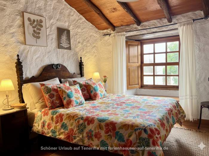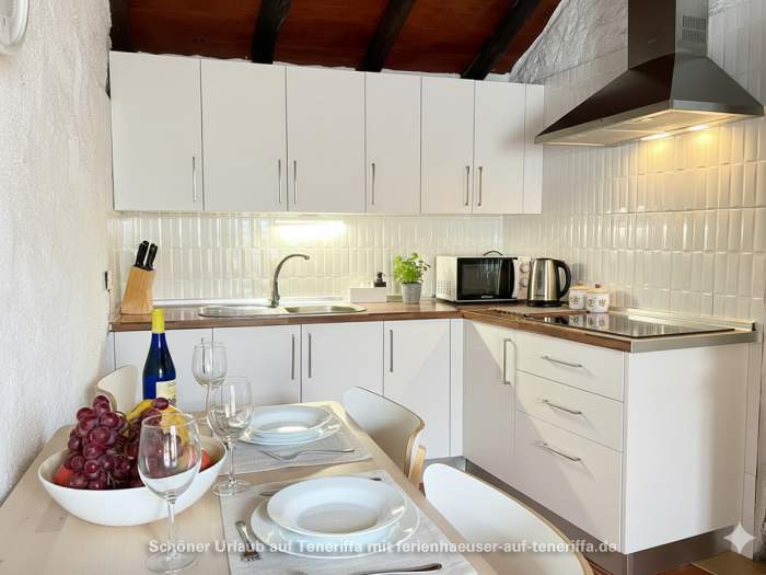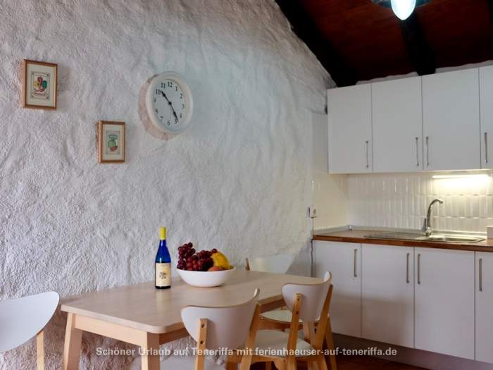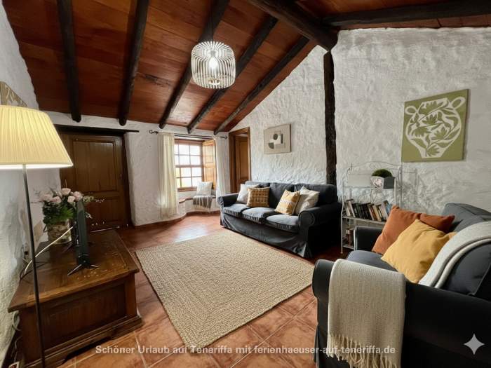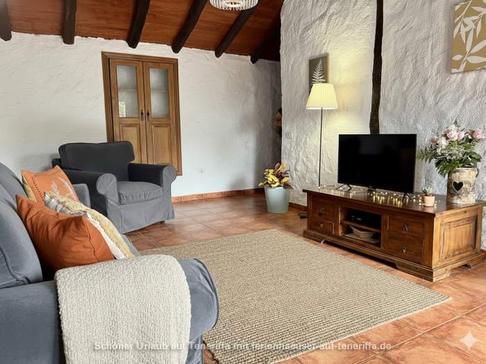 Das Haus selbst ist im traditionellen kanarischen Stil gestaltet und komplett ausgestattet. Es verfügt über eine Küche mit Essbereich und Geräten wie Cerankochfeld, Kühlschrank und Mikrowelle, ein Wohnzimmer mit Satellitenfernsehen und internationalen Programmen, ein Badezimmer mit Dusche sowie zwei Schlafzimmer – eines mit Doppelbett und eines mit zwei Einzelbetten. Eine Waschmaschine steht in einem separaten Raum zur Verfügung.