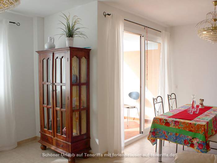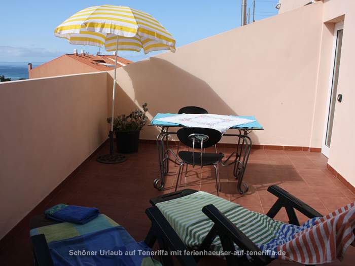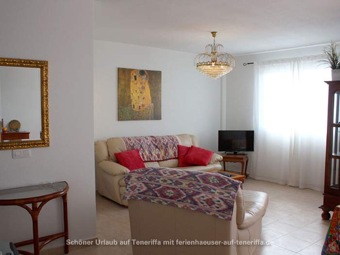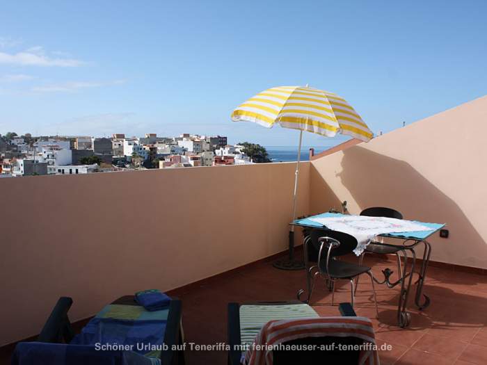 Das Apartment befindet sich in der obersten (2.) Etage eines Wohnhauses und bietet ca. 80 m² Wohnfläche. Es teilt sich auf in einen großzügigen Wohnbereich, zwei Schlafzimmer, eine Küche, zwei Badezimmer sowie einen kleinen und einen großen Balkon. Zusätzlich steht eine Dachterrasse zur Verfügung. Das Ferienapartment liegt im charmanten Fischerdorf Alcala im Südwesten Teneriffas, einem Ort mit zahlreichen Geschäften, Bars, Restaurants, einer Apotheke, Post, Banken und einem Ärztezentrum. Die Anbindung an größere Ortschaften ist gut.