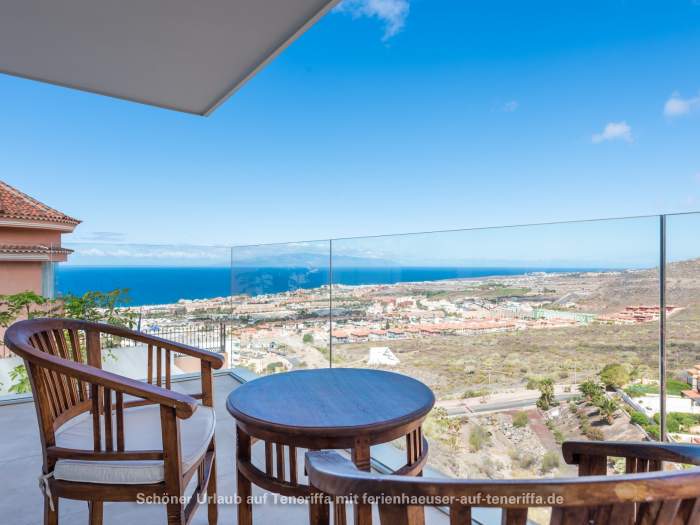 Dieses exklusive Ferienhaus liegt in einer ruhigen Wohngegend oberhalb der bekannten Touristenzentren in Adeje. Die gehobene Lage bietet einen atemberaubenden Blick auf die Küste und das Meer, ideal für einen entspannten Urlaub in stilvoller Umgebung.