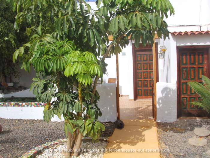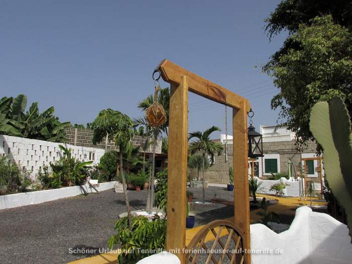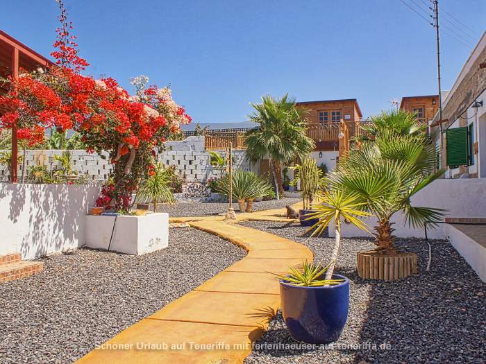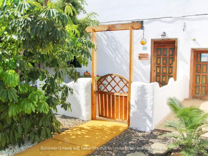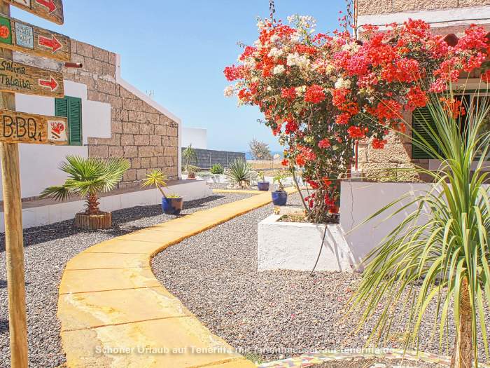 Dieses charmante Ferienapartment befindet sich auf einer malerischen Finca an der Südwestküste Teneriffas, eingebettet in eine Umgebung aus Bananen- und Obstplantagen. Die Lage ist ideal für Naturliebhaber und Erholungssuchende, da die Unterkunft nur wenige Schritte vom Meer entfernt ist und einen eigenen Zugang zum Strand bietet. Die Finca beherbergt insgesamt sechs individuell gestaltete Apartments sowie einen gepflegten Garten, der über eine hohe Treppe erreichbar ist. Im Außenbereich finden Sie einen Tempel oder Pavillon mit Sitzmatten und Kissen, einen Grillbereich mit Kühlschrank sowie einen überdachten Essbereich. Umgeben von bunten Blumen, Ziersträuchern und Bäumen bietet der Außenbereich einen Open-Air-Essplatz, von dem aus ein Weg direkt zum Meer führt. Am Meer angekommen, erwarten Sie Meeresschwimmbäder mit Leitern und etwa 80 Meter entfernt liegt der Sandstrand mit Strandbar in Alcala.