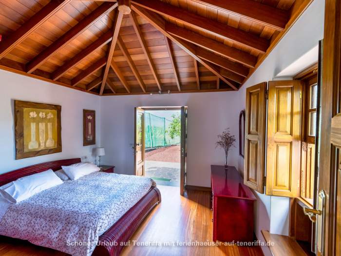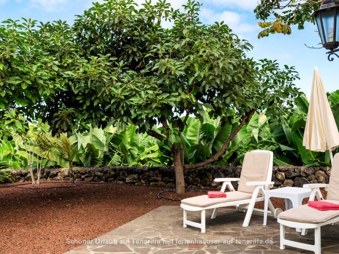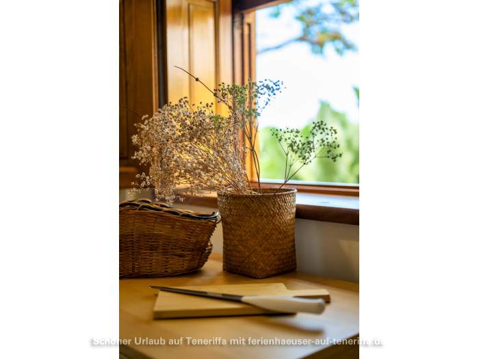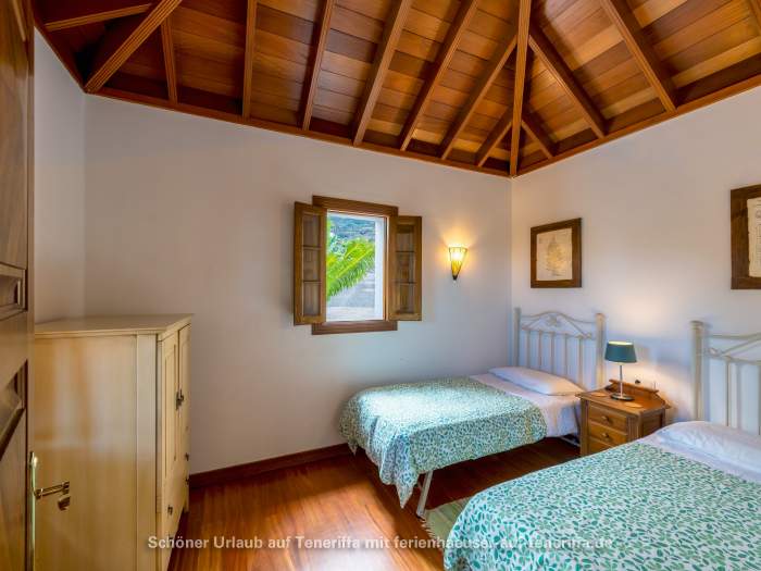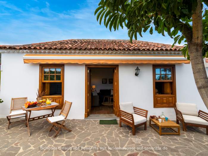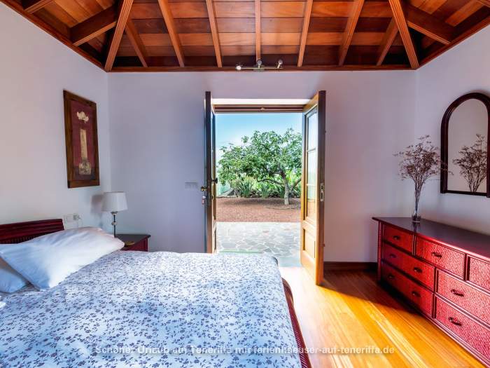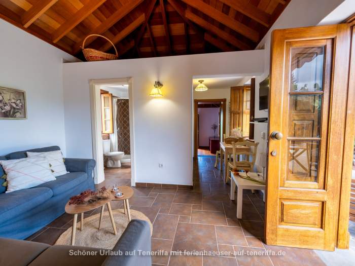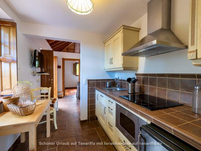 Das freistehende Ferienhaus wurde von Grund auf restauriert und geschmackvoll sowie hochwertig eingerichtet. Es ist von einer großzügigen Terrasse umgeben, an die sich direkt die umliegenden Bananenfelder anschließen. Ganz gleich, in welche Richtung man blickt – die Umgebung ist stets grün, mit Blick aufs Meer oder dem majestätischen Teide im Rücken. Die Ausstattung lässt keine Wünsche offen: eine offene Küchenzeile mit Kaffeemaschine, Mikrowelle mit Grillfunktion, Cerankochfeld, Kühlschrank, Toaster, Geschirr, Töpfen und Pfannen ist ebenso vorhanden wie ein Fernseher mit Satellitenempfang und Internetzugang über einen WLAN-Stick. Das Haus verfügt über zwei Schlafzimmer – eines mit Doppelbett und direktem Zugang zur Terrasse, das andere mit zwei Einzelbetten – sowie ein gemütliches Wohnzimmer, ein Badezimmer mit Dusche und Waschmaschine und die voll ausgestattete Küche. Auf der Terrasse genießen Sie den Meerblick, ausgestattet mit Gartenmöbeln und Sonnenliegen für entspannte Stunden.