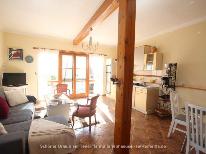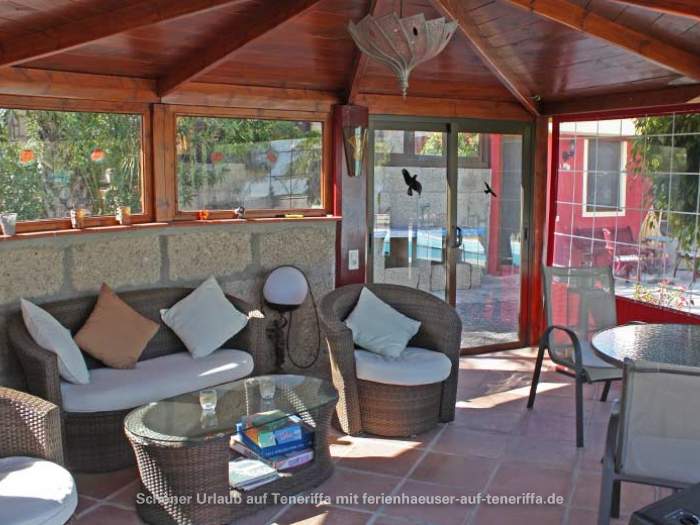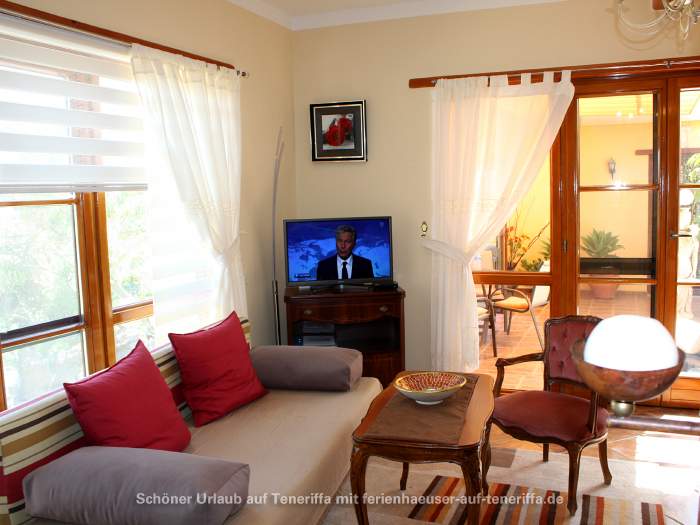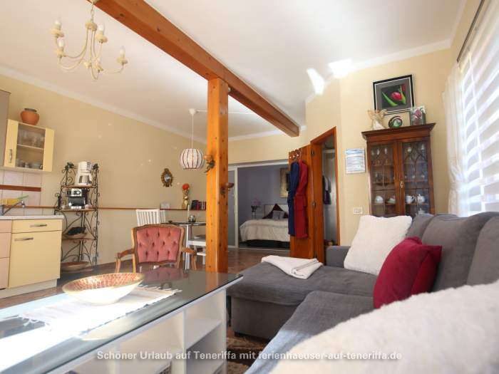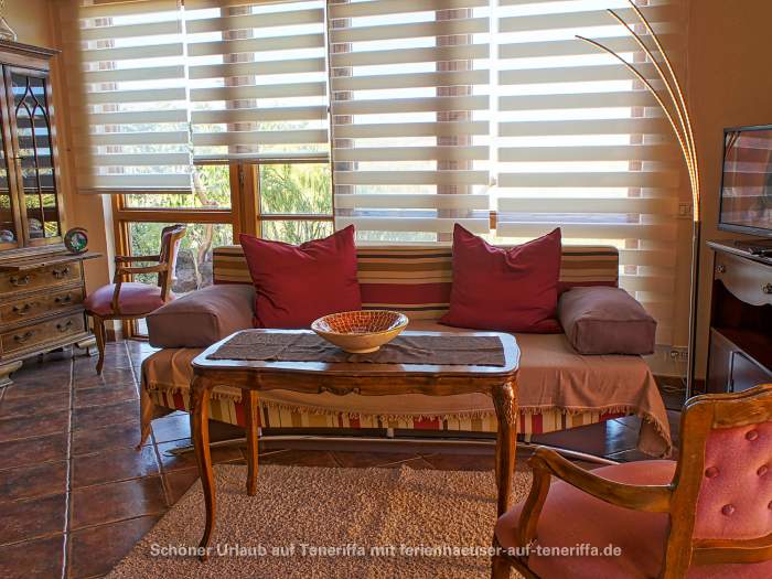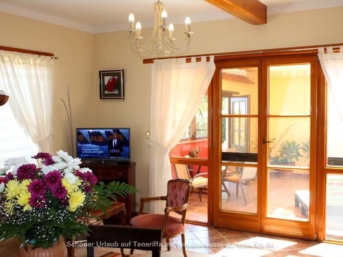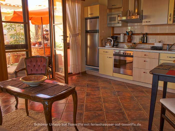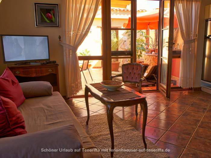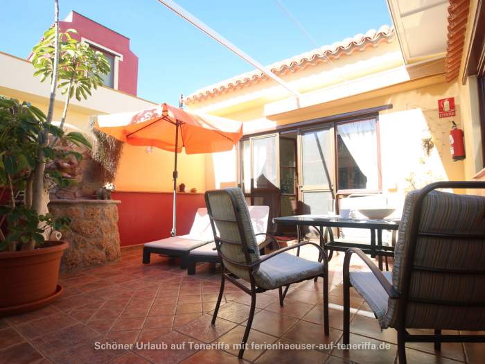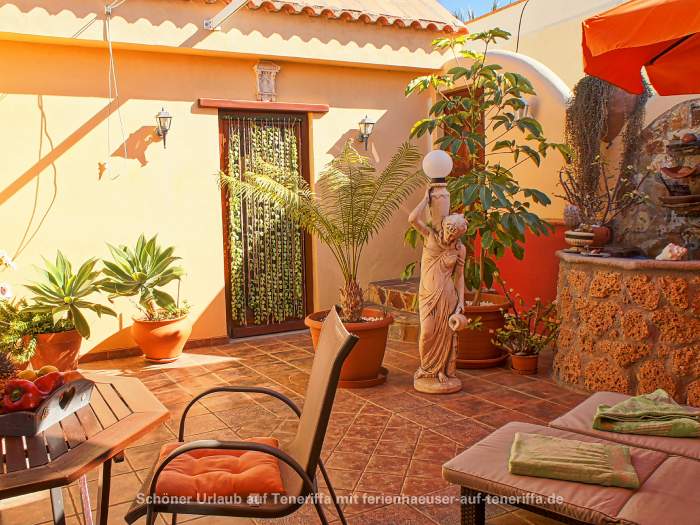Zum Ferienhaus gehört ein ca. 30 qm großer Patio, ein typisch kanarischer Innenhof, der liebevoll mit Gartenmöbeln und Liegestühlen ausgestattet ist. Dieser private Außenbereich lädt zum Entspannen und Verweilen im Freien ein.