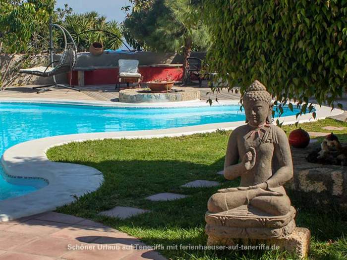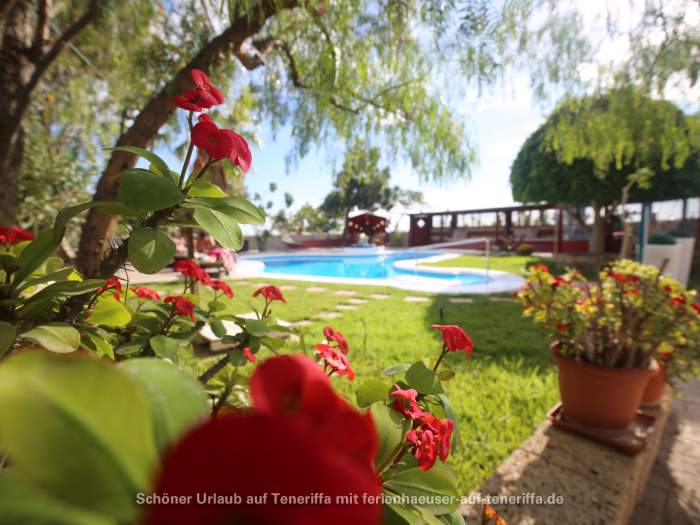Willkommen im sonnigen Süden Teneriffas, in El Salto, einem malerischen Ort nur wenige Kilometer südlich von Granadilla. Hier erstreckt sich diese großzügige und wunderschön gelegene Finca auf einem ca. 7.000 Quadratmeter großen Grundstück. Die Lage in nur 270 Metern Höhe über dem Meer sorgt für ein angenehmes, mildes Klima, ideal für einen erholsamen Aufenthalt. Das Anwesen bietet einen beeindruckenden Poolbereich, umgeben von üppiger Natur, tropischen Sitzecken, Sonnenliegen, Hängematten und -sesseln, sowie einen charmanten Lagerfeuerplatz mit Grillmöglichkeit und weiteren Annehmlichkeiten. Das große Grundstück beherbergt insgesamt nur vier Wohneinheiten, sodass Sie vollsten Schutz Ihrer Privatsphäre genießen können.