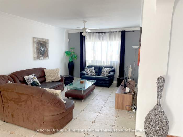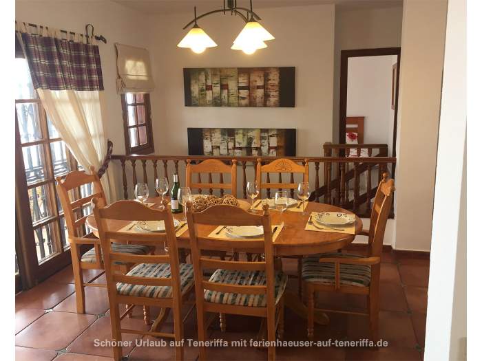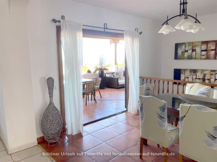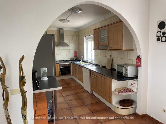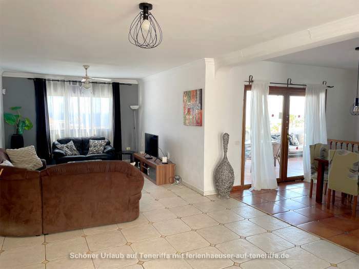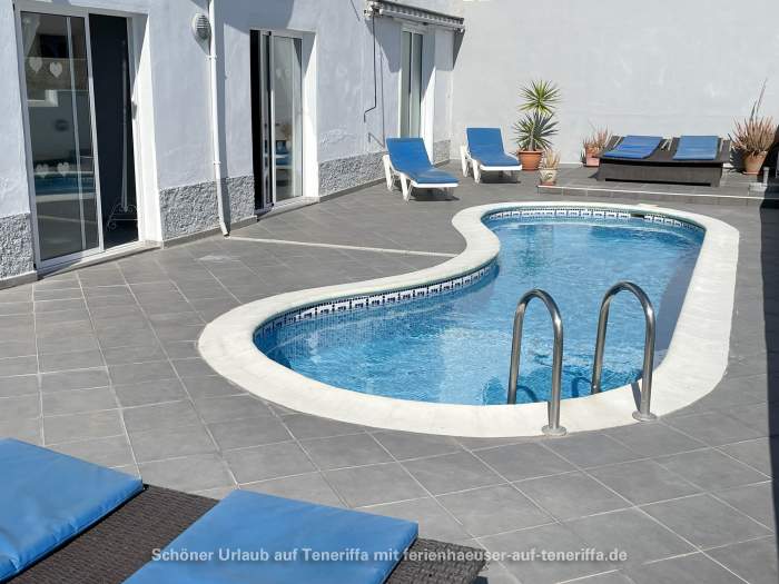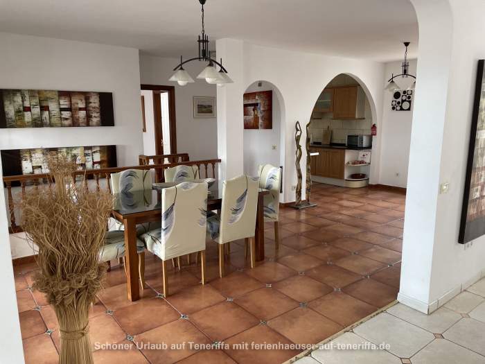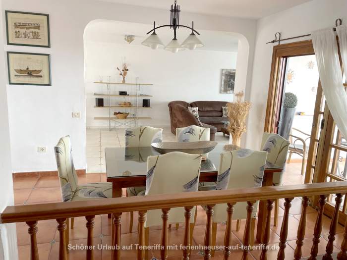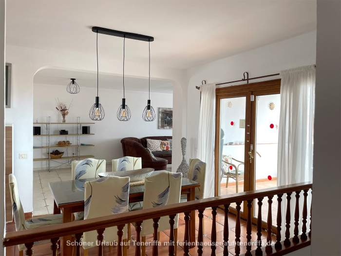 Das vollständig ausgestattete Ferienhaus verfügt über einen großzügigen Wohnbereich, einen Essbereich, eine moderne Einbauküche mit Geschirrspüler, vier Schlafzimmer, drei Badezimmer (zwei davon en Suite), einen Hauswirtschaftsraum mit Waschmaschine sowie eine große Terrasse mit Privatpool. Von der Terrasse aus eröffnet sich ein spektakulärer Blick auf den Atlantik und La Gomera. Der Poolbereich lädt zum Entspannen ein und ist mit Sonnenliegen sowie weiteren Sitzgelegenheiten ausgestattet.
