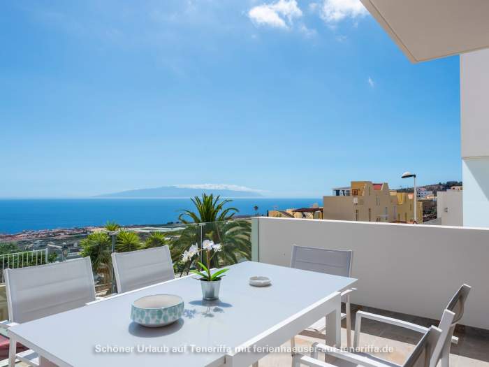 In Los Menores, einem ruhigen und malerischen Ortsteil außerhalb von Adeje, befindet sich dieses wunderschöne Ferienhaus in einer sonnigen, sicheren Lage im Südwesten Teneriffas. Die Hanglage sorgt für eine spektakuläre Aussicht auf das Meer, die Sie auf der möblierten Terrasse in vollen Zügen genießen können. Besonders beeindruckend ist der Blick bis zur Nachbarinsel La Gomera, was das Urlaubsgefühl zusätzlich verstärkt.