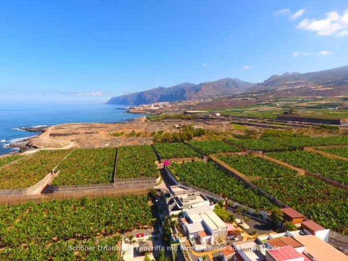 Umgeben von üppigen Bananenplantagen und Obstbäumen liegt diese exklusive Finca mit mehreren Apartments direkt am Meer in Alcala. Die Lage bietet Privatsphäre und eine atemberaubende Aussicht.