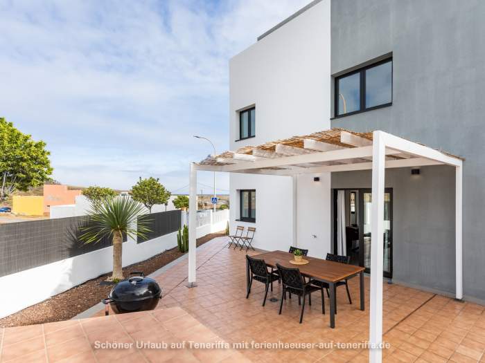 Erleben Sie einen unvergesslichen Aufenthalt in diesem brandneuen, modernen Ferienhaus, das nur wenige Schritte vom Meer in Puertito de Los Silos entfernt liegt. Das Anwesen besticht durch eine großzügige Terrasse sowie eine Dachterrasse mit spektakulärem Meerblick. Das Haus bietet vier helle Schlafzimmer, drei voll ausgestattete Badezimmer und ein geräumiges Wohn- und Esszimmer mit offener Küche. Der Zugang zur Terrasse mit Grillmöglichkeit macht das Haus ideal für gesellige Abende. Die moderne Klimaanlage sorgt für angenehmes Klima zu jeder Jahreszeit.