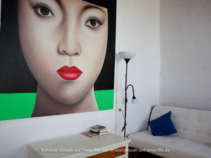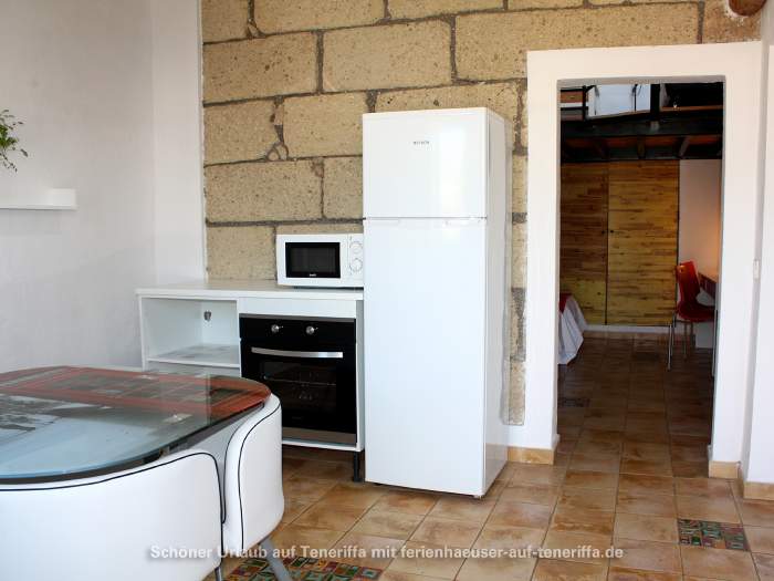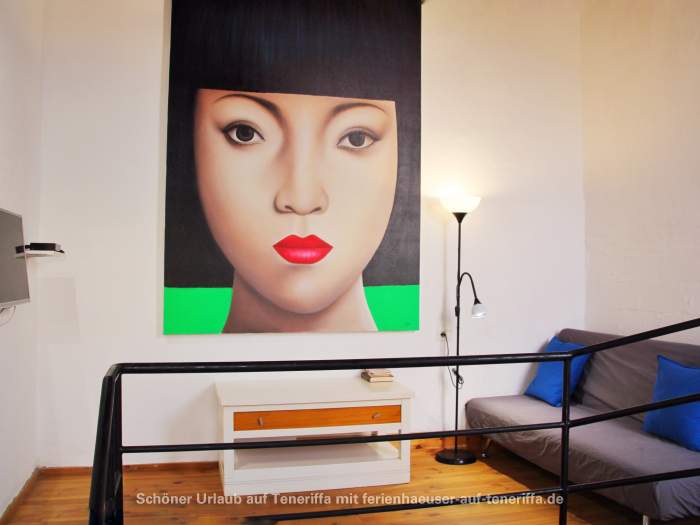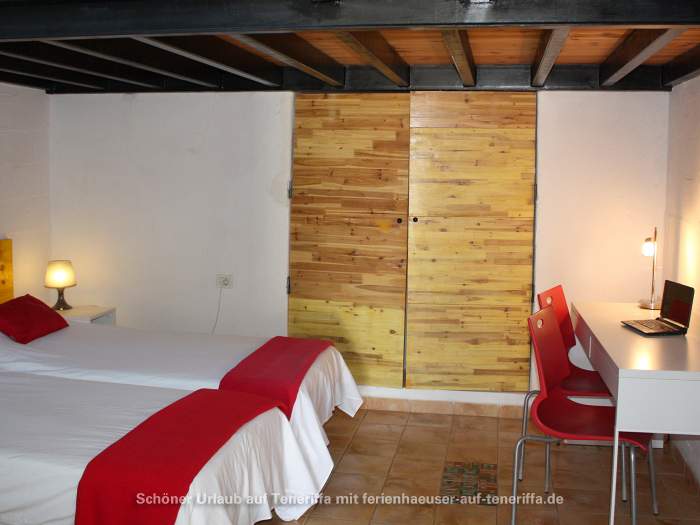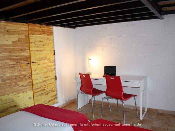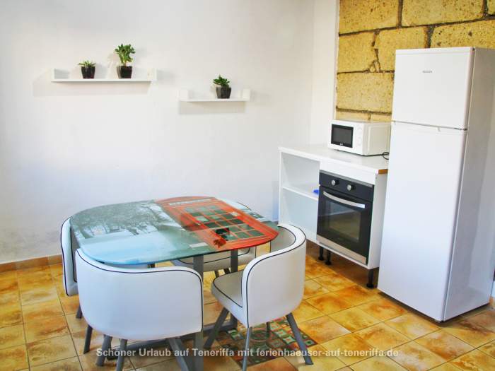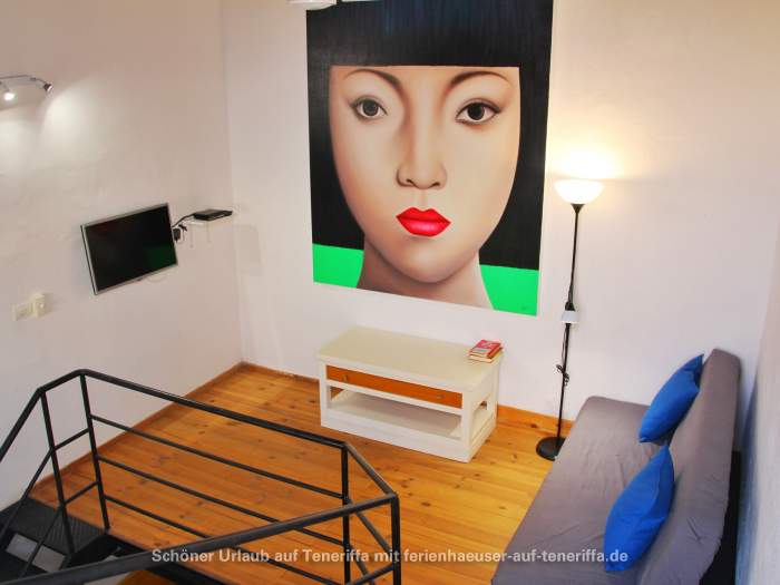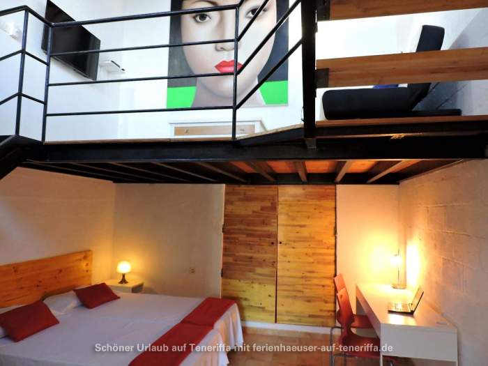 Die im Jahr 2016 fertiggestellte Ferienwohnung erstreckt sich über zwei Etagen und bietet Platz für eine kleine Familie oder Paare. Sie verfügt über ein Schlafzimmer mit zwei Einzelbetten, einen Wohnraum mit Schlafsofa, eine voll ausgestattete Küche mit einem 4-Platten-Ceranherd, Kühlschrank, Wasserkocher, Mikrowelle, Kaffeemaschine und weiteren Geräten. Das Badezimmer ist mit Dusche und WC ausgestattet. Zur Ausstattung gehören zudem WLAN, Sat-TV, ein Elektro-Ofen und andere moderne Annehmlichkeiten. Die Wohnung besitzt zwei möblierte Terrassen, darunter eine Dachterrasse mit atemberaubendem Meerblick sowie Blick auf La Gomera.