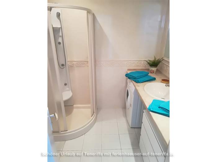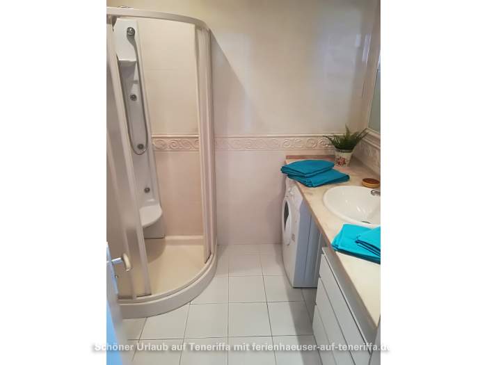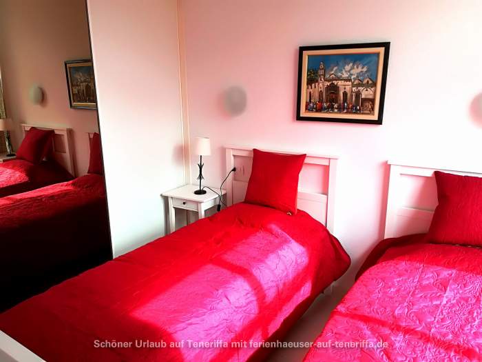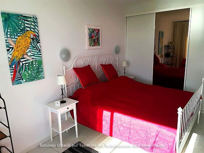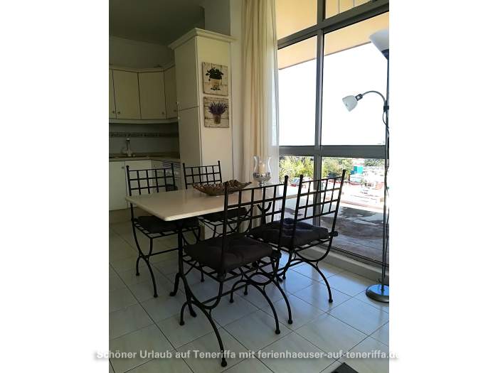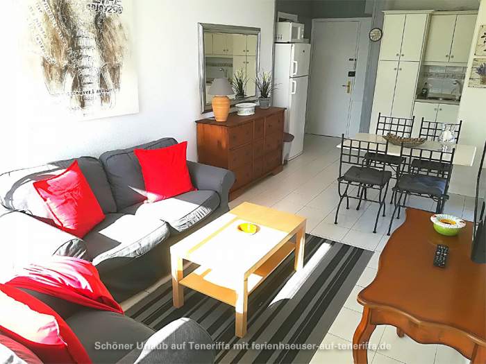 Die 63 m² große Ferienwohnung bietet ein gemütliches Wohnzimmer mit Sofa und SAT-TV, zwei separate Schlafzimmer sowie eine voll ausgestattete offene Küche. Das Hauptschlafzimmer verfügt über ein Doppelbett, während das zweite Schlafzimmer mit zwei Einzelbetten ausgestattet ist. Vom Essbereich aus genießen Sie eine herrliche Aussicht auf die Umgebung. Das Badezimmer ist mit einer Massagedusche, Waschbecken und WC ausgestattet. Auf der tropisch bepflanzten Terrasse stehen Ihnen bequeme Sonnenliegen, ein Tisch und Stühle für entspannte Stunden im Freien zur Verfügung.