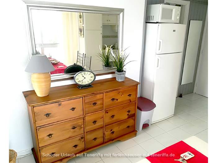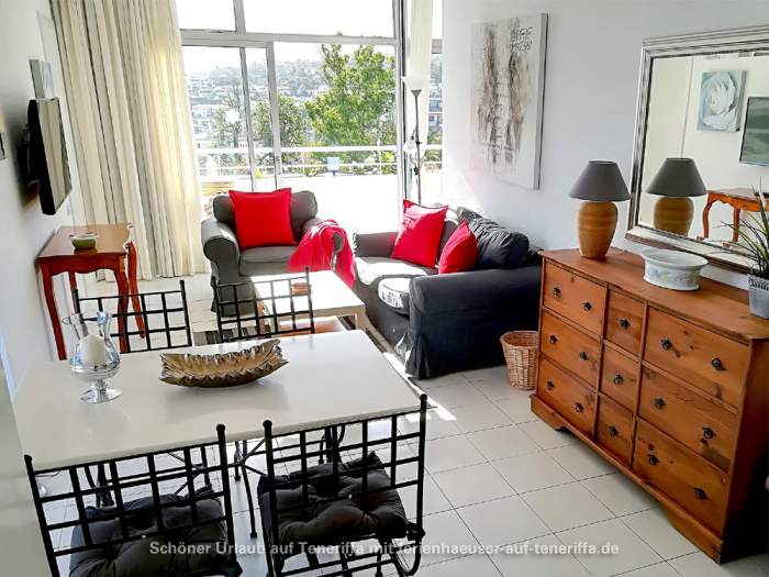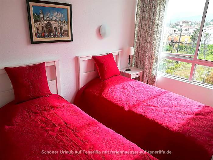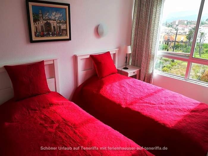 Diese elegante Ferienwohnung befindet sich in der dritten Etage eines gepflegten Apartmenthauses im Herzen von Puerto de la Cruz. Die Lage ist besonders attraktiv, da sie mitten im Grünen liegt, zwischen zwei malerischen Parks: dem bekannten Taoropark auf der einen Seite und einem naturschützenden Park auf der anderen. Trotz der ruhigen Umgebung ist die Unterkunft äußerst zentral und bequem erreichbar. Die Anlage verfügt über eine komfortable Lobby, einen Aufzug, sowie einen großen, klimatisierten Swimmingpool mit Liegebereich inklusive Sonnenliegen und Sonnenschirmen. Zudem gibt es eine Außendusche für erfrischende Abkühlung.