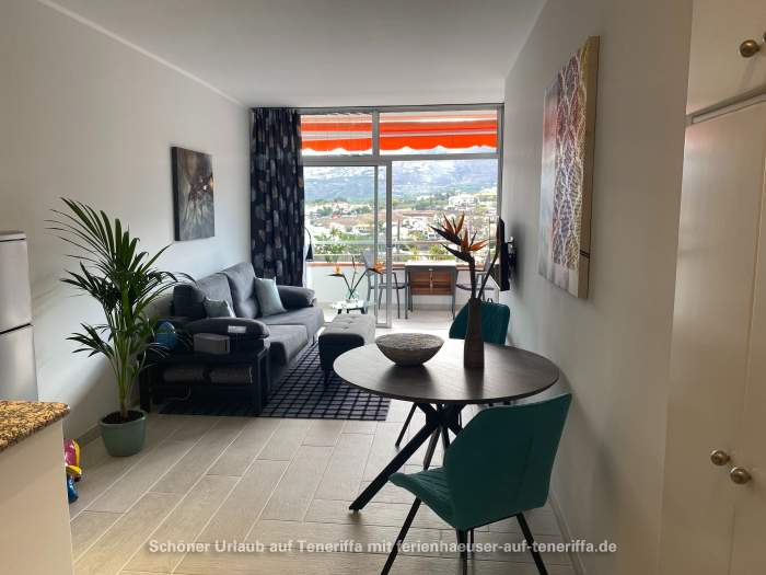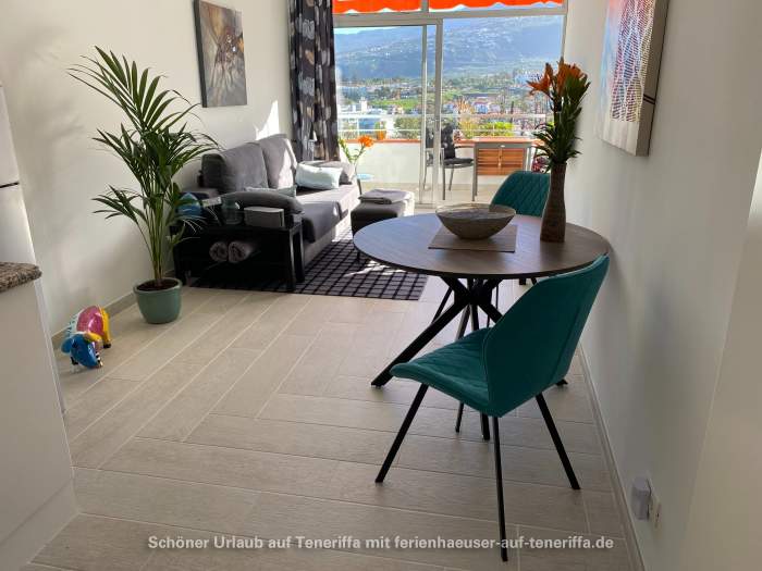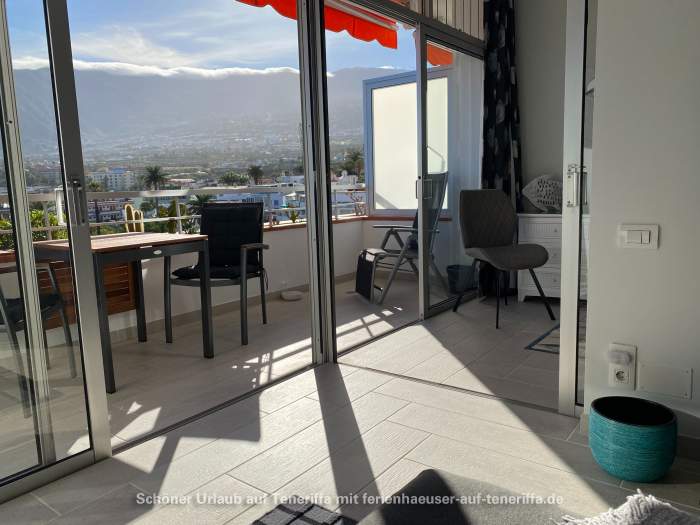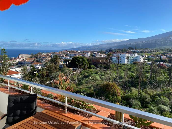 Das im dritten Stock gelegene Apartment hat eine Wohnfläche von 45 m² und eine 13 m² große Terrasse, die einen herrlichen Blick auf das Orotava-Tal und das Meer bietet. Die Morgensonne und die Möglichkeit, das Frühstück im Freien zu genießen, sind hier gegeben. Bei Sonnenuntergang sind die Ausblicke besonders beeindruckend.