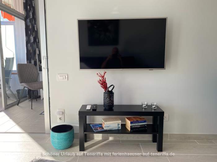 Zur Unterhaltung dient ein großer Philips-Fernseher mit HD-Programmen in Deutsch und Spanisch sowie mehreren Radiosendern. Der Schlafbereich kann durch eine große Glasschiebetür vom Wohnbereich abgetrennt werden, um Privatsphäre zu gewährleisten.