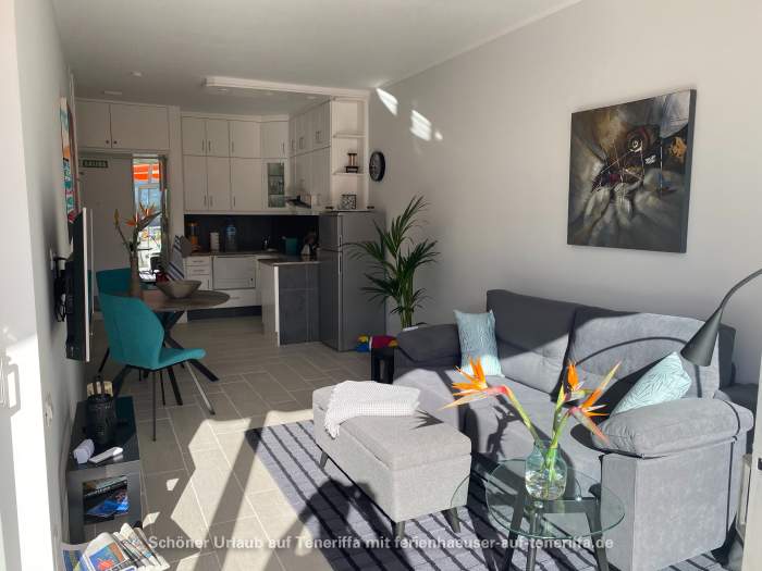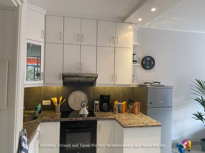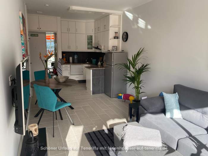 In unmittelbarer Nähe sind Einkaufsmöglichkeiten vorhanden, darunter Geschäfte für frische Brötchen, Lebensmittel, Obst und Gemüse sowie Tageszeitungen. Zudem sind Bars, Restaurants und Bushaltestellen bequem zu Fuß erreichbar. Die Strände Playa Jardín und Punta Brava sind etwa 15 Gehminuten entfernt.