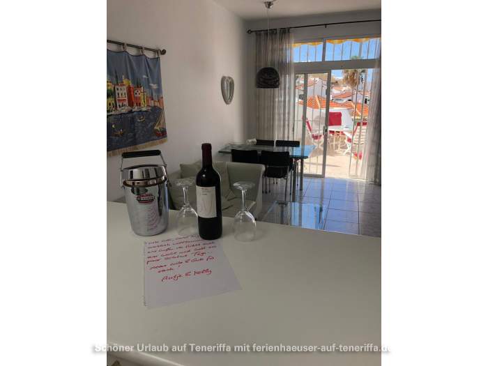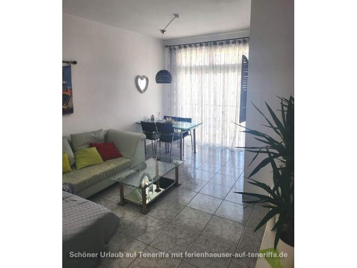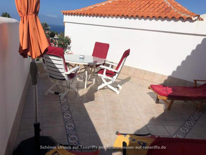 Der gemeinschaftliche Poolbereich mit Sonnenliegen lädt zum Entspannen ein, wenn Sie eine Pause vom Strand wünschen. Die private Terrasse der Wohnung bietet einen herrlichen Meerblick bis zur Nachbarinsel La Gomera und ist mit Gartenmöbeln ausgestattet.