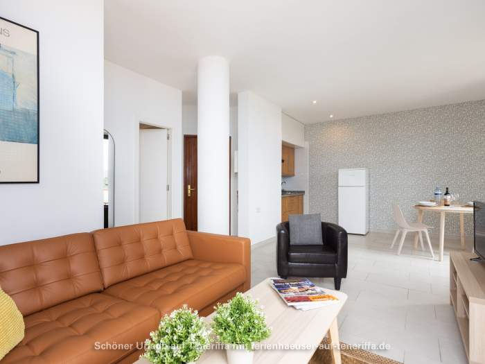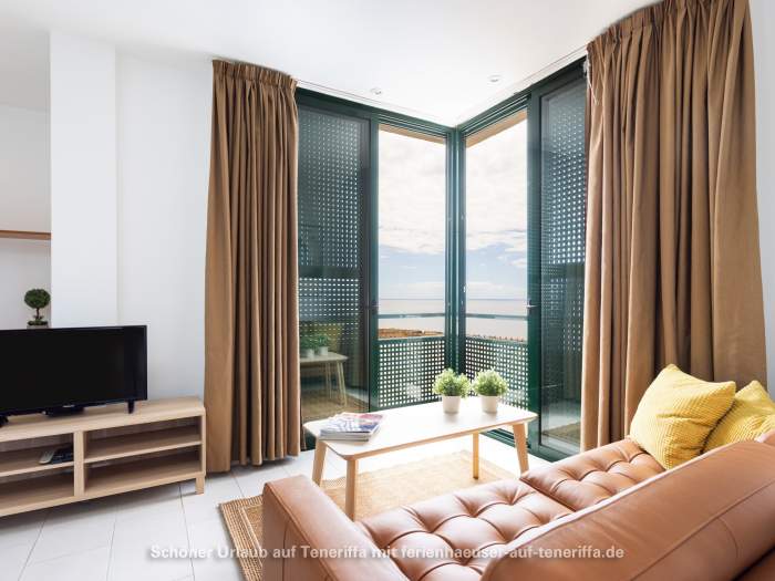 Entspannen Sie auf dem privaten Balkon oder genießen Sie die Sonne auf der gemeinschaftlichen Dachterrasse mit Swimmingpool und Sonnenliegen – inklusive Panoramaausblick auf den Atlantik und La Gomera.