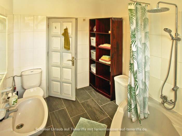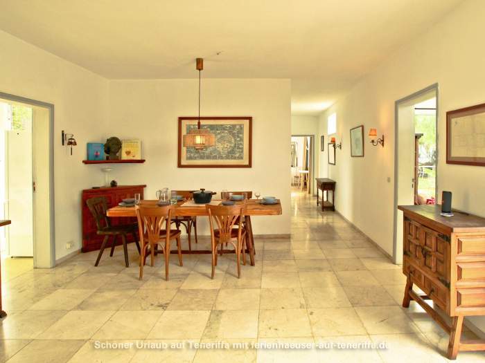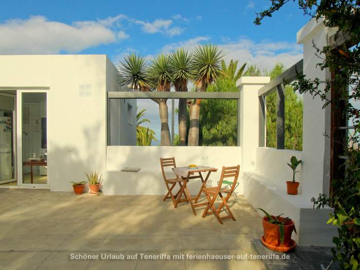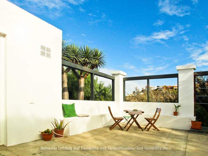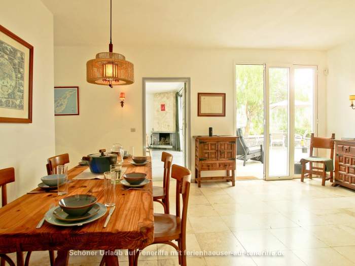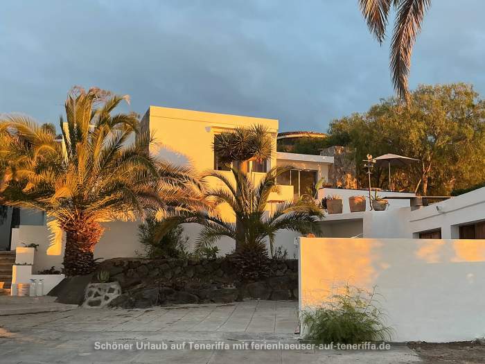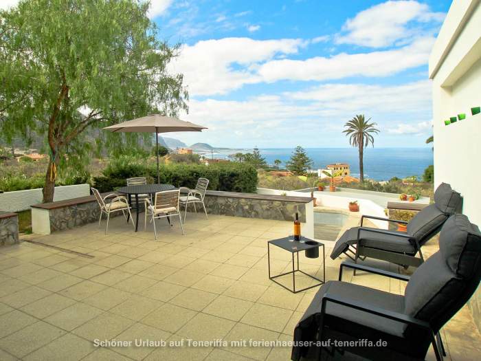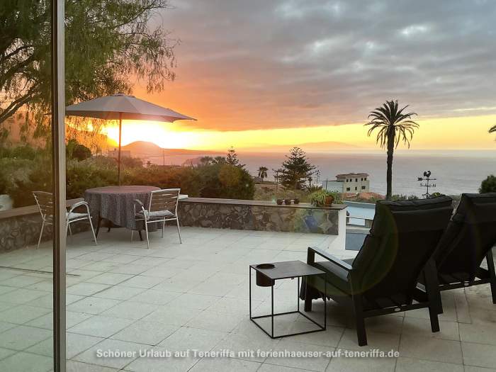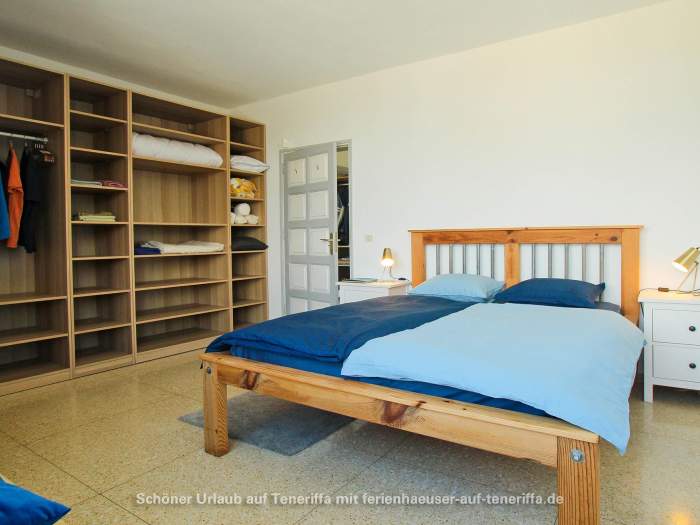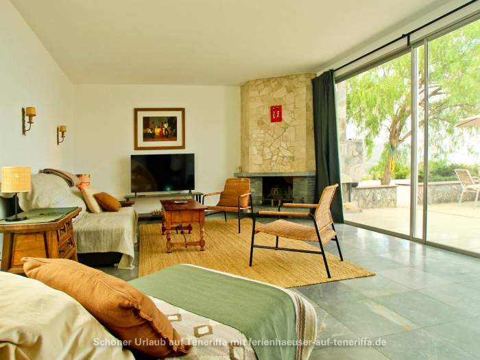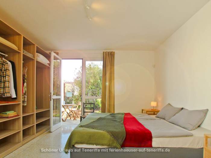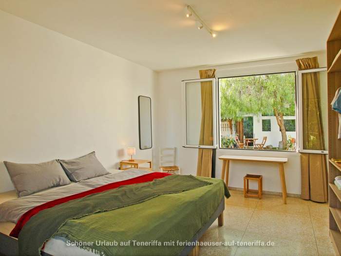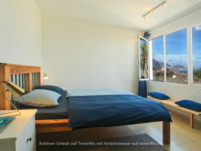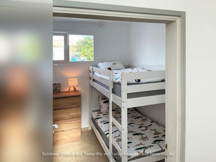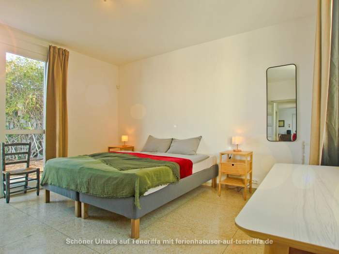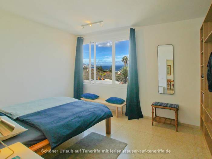 Die Villa verfügt über eine familienfreundliche Raumaufteilung mit insgesamt drei Schlafzimmern, die Platz für bis zu vier Erwachsene und zwei Kinder bieten. Während die Erwachsenen in zwei Zimmern mit komfortablen Doppelbetten nächtigen, steht für die jüngeren Gäste ein gemütliches Zimmer mit einem Doppelstockbett bereit. Dank der durchdachten Architektur haben Sie von mehreren Räumen aus direkten Zugang zum Garten, wodurch sich das Haus stets mit der Natur verbunden anfühlt und das Leben im Freien in den Mittelpunkt rückt. Herzstück des Außenbereichs ist die großzügige Terrasse, von der aus Sie einen atemberaubenden Panoramablick genießen, der die Küste entlang bis nach Garachico und weiter in den Westen schweift. Hier erleben Sie unvergessliche Sonnenuntergänge und haben an klaren Tagen freien Blick auf die Nachbarinsel La Palma.