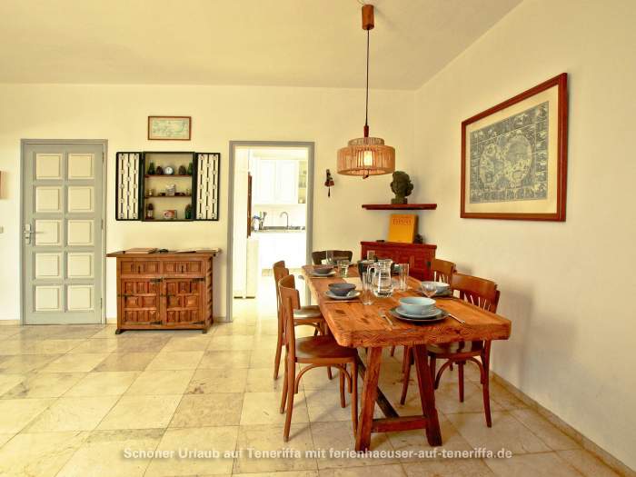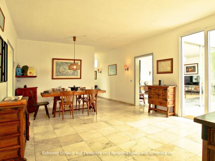 Die Lage des Ferienhauses ist ideal für Gäste, die sowohl Ruhe als auch kurze Wege schätzen. Die historische Stadt Icod de los Vinos erreichen Sie in nur 15 Minuten zu Fuß. Die Versorgung ist dank Supermärkten wie Mercadona und Lidl, die in weniger als 5 Minuten mit dem Auto erreichbar sind, komfortabel gesichert. Den nächsten Strand finden Sie in der malerischen Bucht von Playa San Marcos, welche als Stadtstrand von Icod de los Vinos gilt und auch Restaurants bietet. Zusätzliche gastronomische Angebote sind sowohl fußläufig in der unmittelbaren Region als auch in Playa San Marcos verfügbar. Diese zentrale und dennoch ruhige Lage macht die Villa zum perfekten Ausgangspunkt, um den Norden von Teneriffa zu erkunden oder einfach nur eine Oase der Ruhe inmitten von Grün und Meerblick zu genießen.