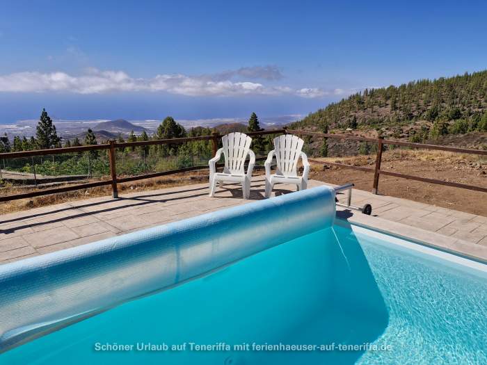 Der Außenbereich überzeugt mit einem großen Pool (nicht beheizt), mehreren Terrassen, einer möblierten Holzveranda, einem möblierten BBQ-Bereich und einem grandiosen Ausblick auf das Meer und die grüne Umgebung. Vor dem Ferienobjekt beginnen mehrere Wanderwege in die nähere und weitere Umgebung der Bergwelt des Südens.