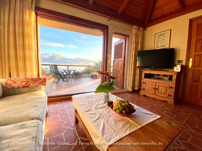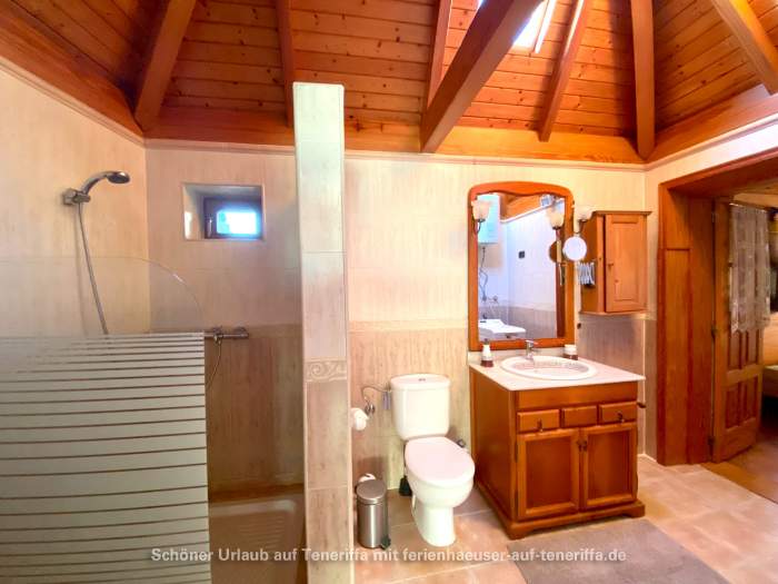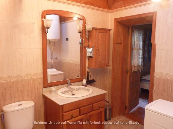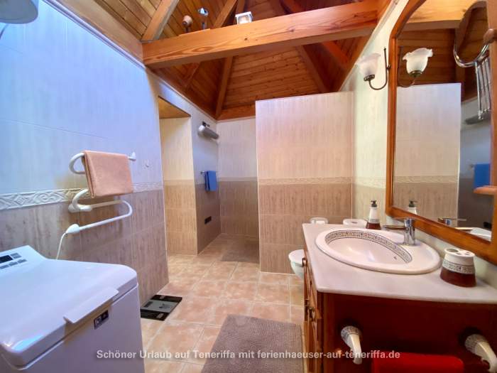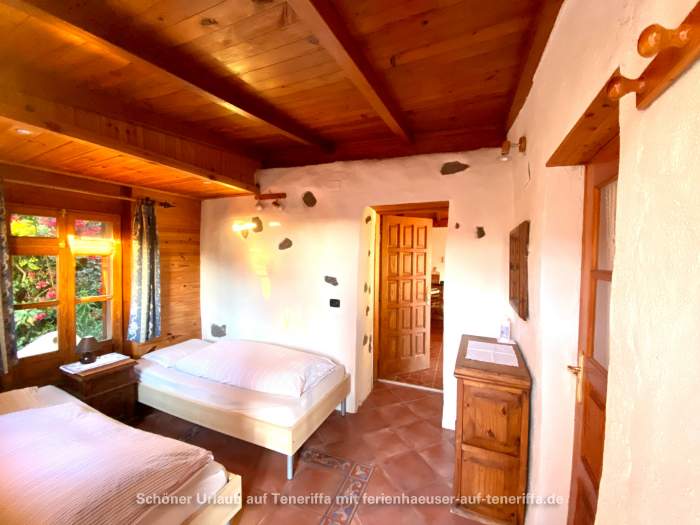 Auf dem Grundstück der Finca befinden sich drei Häuser, von denen zwei vermietet sind. Das dritte Haus wird halbjährlich vom Eigentümer bewohnt. Es handelt sich um ein historisches Gebäude, das vor über 100 Jahren erbaut wurde und mit viel Liebe zum Detail sowie einem hohen Komfortstandard restauriert wurde. Das Haus verfügt über ein Wohnzimmer mit atemberaubendem Meerblick, eine voll ausgestattete Einbauküche, einen Schlafbereich sowie ein Badezimmer mit Dusche und Waschmaschine. Zwei Terrassen mit Blick auf den Teide und den Atlantik laden zum Verweilen ein. Hier finden Sie Tische, Stühle, Liegen, Sonnenschirme und einen gemauerten Grill, um die Sonnenuntergänge oder die frische Meeresbrise zu genießen. Auch bei kühler Witterung sorgt eine leistungsfähige Wärmepumpe/Klimaanlage und eine IR-Infrarotsauna für angenehme Temperaturen und Wohlbefinden.