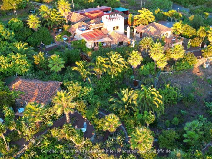 Diese charmante, rustikale Finca befindet sich eingebettet in eine grüne, ländliche Umgebung, umgeben von exotischen Pflanzen, Wein- und Obstgärten. Vom Anwesen aus genießen Sie einen atemberaubenden Blick auf das Meer und die umliegende Natur. Die Finca bietet Platz für 2 bis 4 Personen und liegt in einer ruhigen Gegend, die sich ideal für Naturliebhaber, Ruhesuchende und Wanderbegeisterte eignet. Sie befindet sich etwa 500 Meter über dem Meeresspiegel, nahe dem kleinen Dorf La Vega, angrenzend an Weinberge und mit herrlicher Aussicht auf die Küste und den Teide.