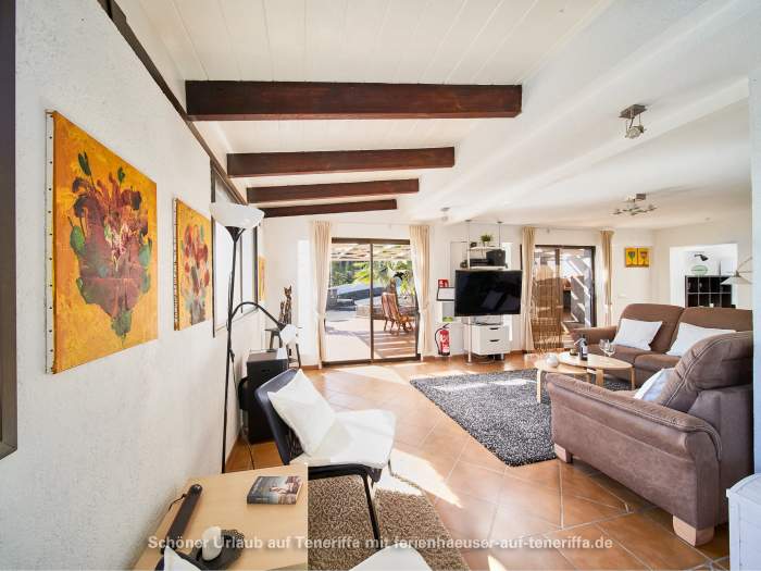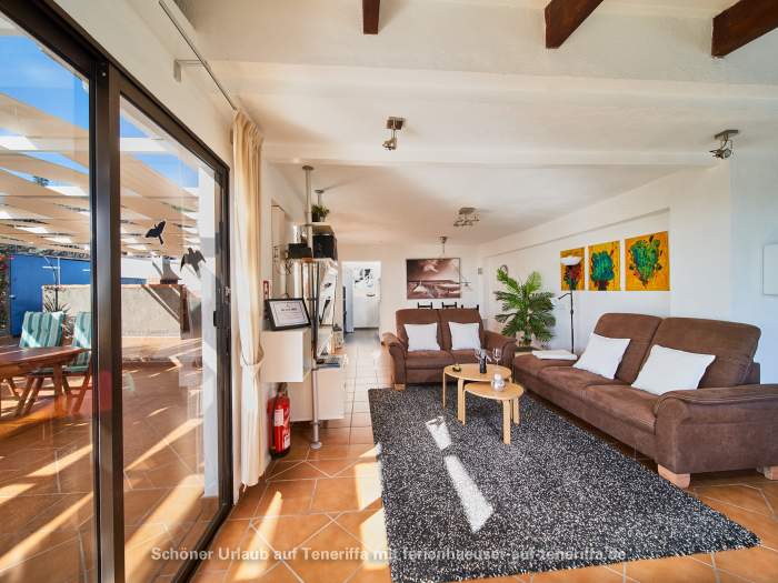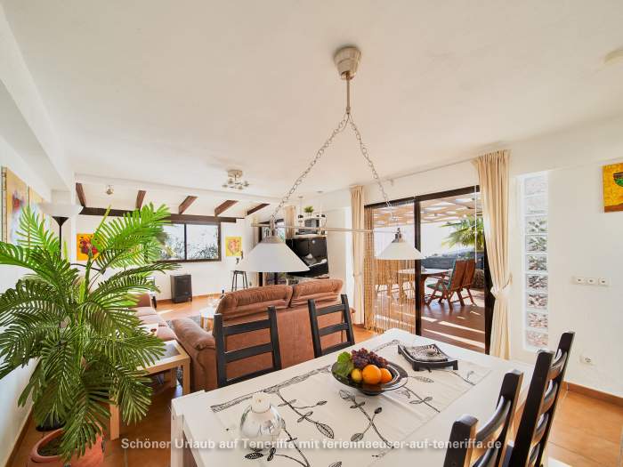 Von den Terrassen aus eröffnet sich ein atemberaubender Blick auf die Nachbarinsel und das offene Meer. Das Haus befindet sich im Westen Teneriffas, oberhalb von Los Gigantes und Playa de la Arena, einer Region, die mit bis zu 350 Sonnentagen im Jahr verwöhnt. Das Haus liegt auf 450 Metern Höhe über dem Meer, was eine entspannte Atmosphäre und eine herrliche Aussicht garantiert. Die Umgebung ist geprägt von Ruhe und Natur, perfekt zum Erholen.