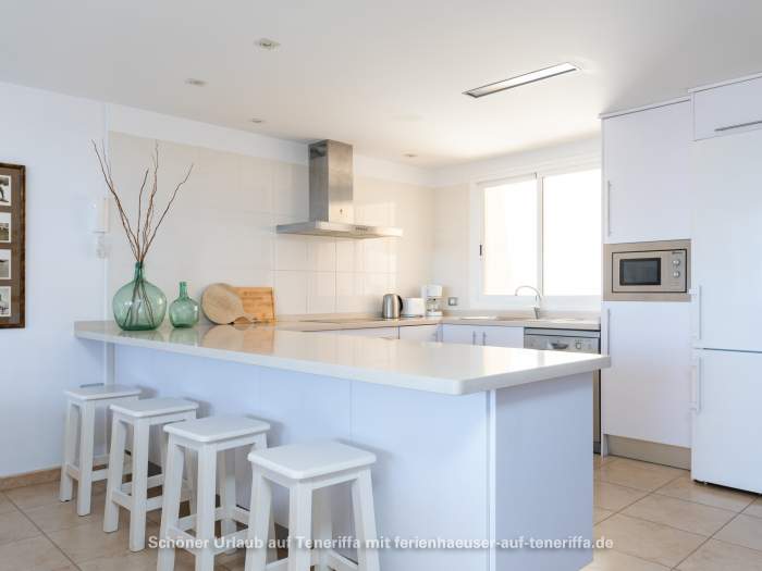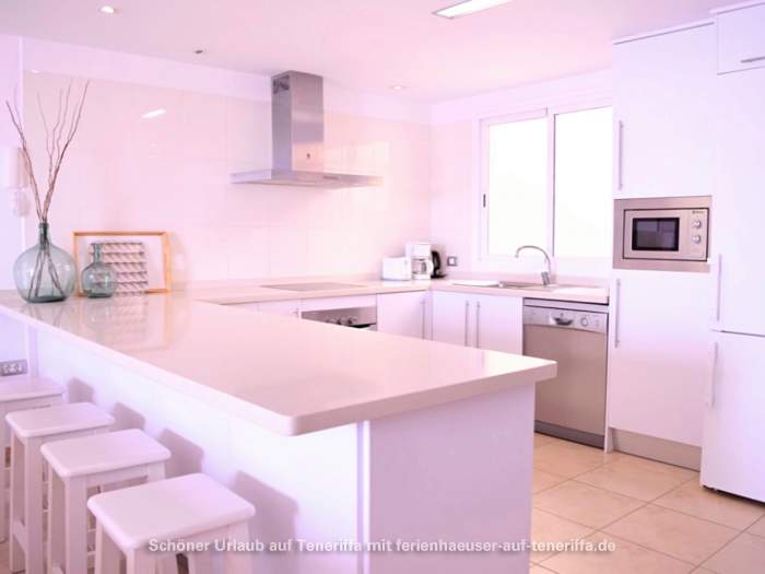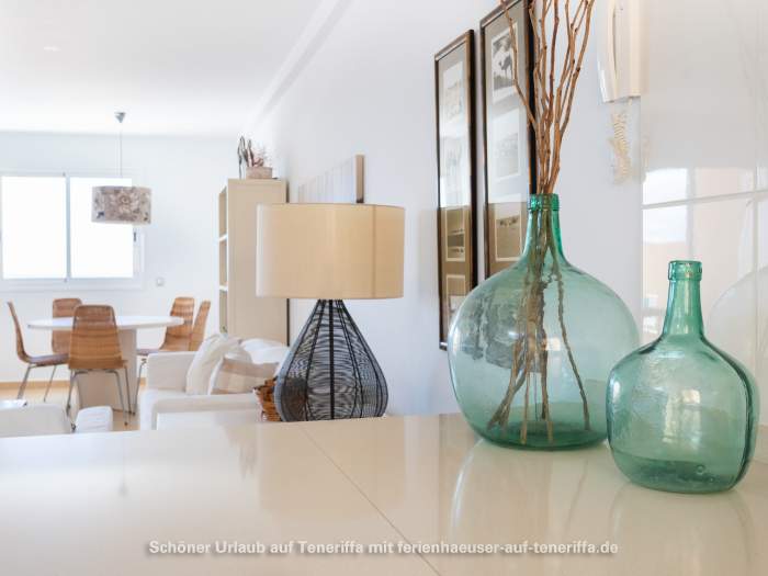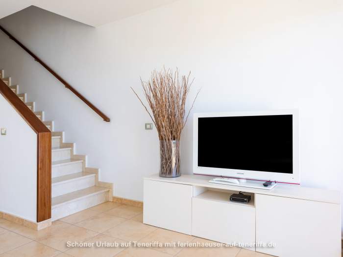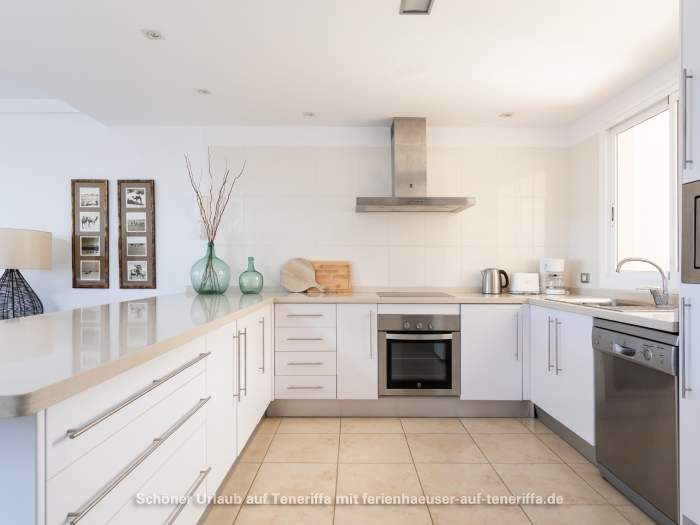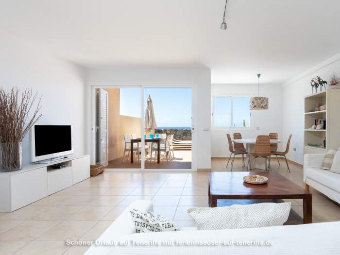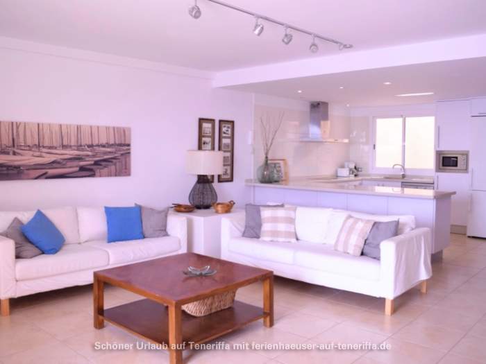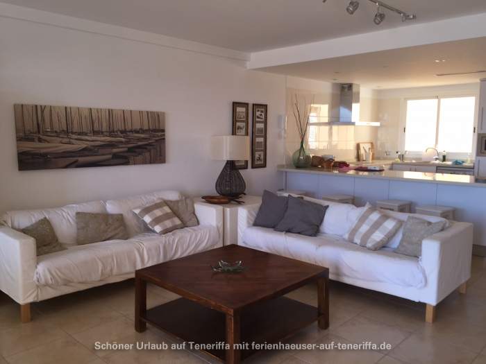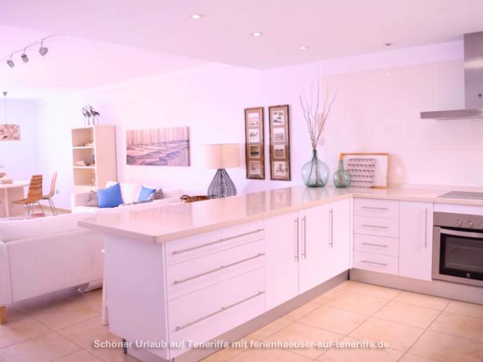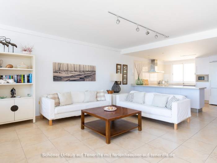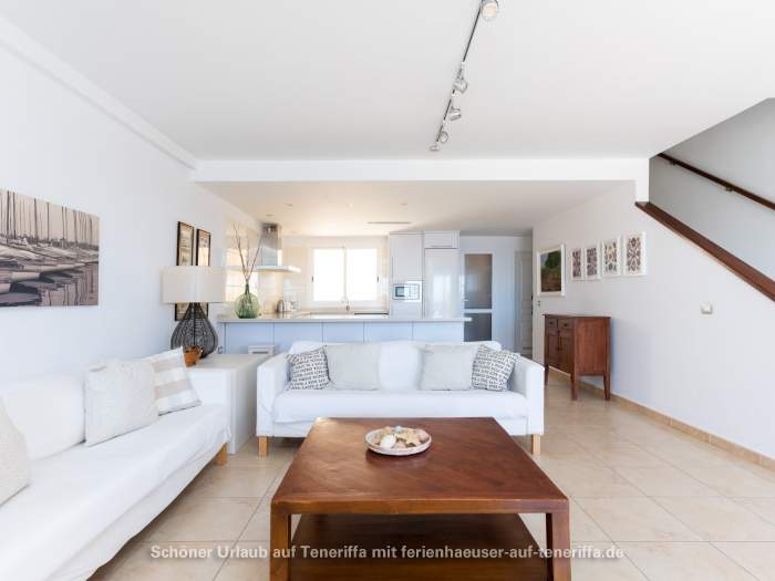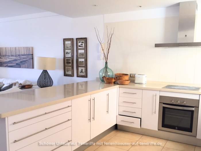Die stilvoll eingerichtete Wohnung bietet einen herrlichen Blick aufs Meer. Im Erdgeschoss befinden sich der Wohnraum mit einem 42-Zoll-Sat-TV, eine offene Küche, Zugang zur Terrasse sowie ein Gäste-WC. Die Küche ist voll ausgestattet mit einem Cerankochfeld, Backofen, Mikrowelle, Geschirrspüler, Kühl-Gefrierkombi, Mixer, Entsafter, Kaffeemaschine und vielem mehr.