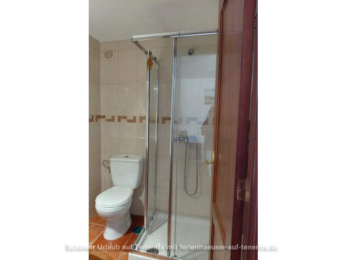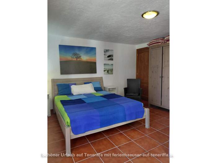 Das Schlafzimmer besitzt ein Doppelbett und zwei Schränke. Das Badezimmer mit Dusche und Toilette ist vom Schlafzimmer aus erreichbar. Eine zusätzliche Toilette befindet sich im Eingangsbereich, wo auch eine Waschmaschine steht. Vom Wohnzimmer aus gelangen Sie auf einen kleinen Patio, der zum Entspannen einlädt.