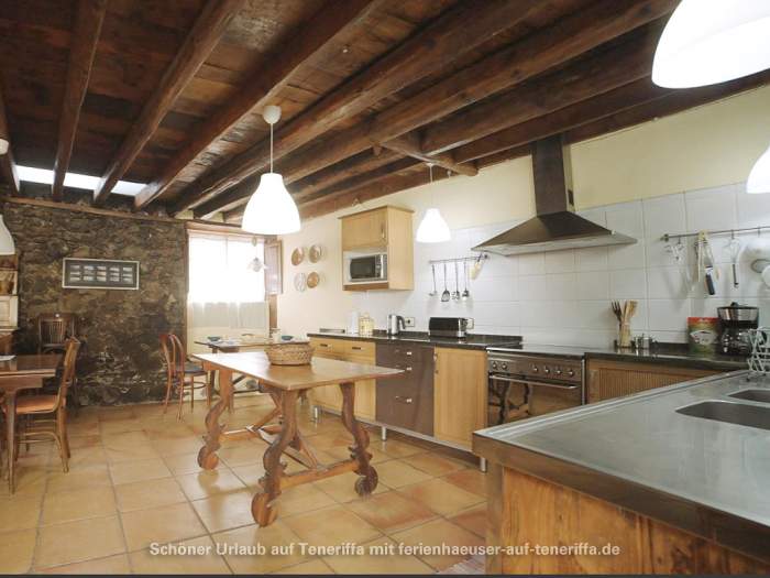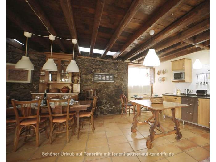 Innen beeindruckt das 210 m² große Ferienhaus mit seinem rustikalen kanarischen Stil, der durch viel Holz für ein behagliches Ambiente sorgt. Mit 4 Schlafzimmern und 2 Badezimmern bietet es Platz für bis zu 7 Personen.
