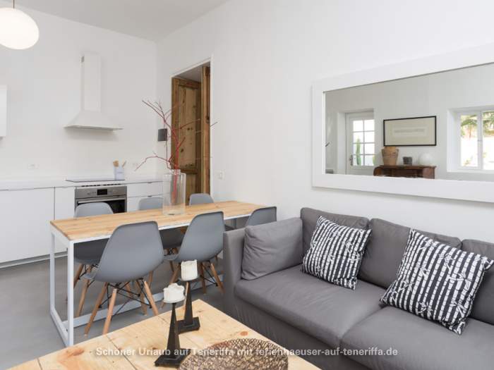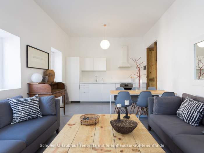 Das Ferienhaus ist im traditionellen kanarischen Stil gebaut und bietet alle wesentlichen Annehmlichkeiten für bis zu 6 Personen. Es verfügt über drei Schlafzimmer, die jeweils mit zwei Einzelbetten (90 x 200 cm) ausgestattet sind. Das Hauptschlafzimmer besitzt ein en-suite Bad mit Dusche und Fön. Im offenen Wohnbereich befindet sich eine voll ausgestattete Küchenzeile mit Geschirrspüler, Ofen und weiteren Geräten, die moderne Ausstattung harmonisch mit traditionellen Elementen verbindet. Zur Unterhaltung stehen ein Flachbildfernseher mit DVD- und MP3-Player sowie WLAN zur Verfügung.