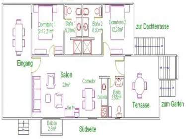 In der Casa Azul gibt es zwei Schlafzimmer, ein Wohnzimmer, zwei Bäder, eine Küche und ein Gäste-WC. Beide Schlafzimmer sind mit Doppelbetten ausgestattet und haben ein En-Suite-Bad mit Dusche, Bidet und Elektro-Strahler. Zudem gibt es eine Zusätzliche Gästetoilette. Im Wohnzimmer findet sich eine Schlafcouch, auf der zwei weitere Personen Platz finden und ein Fernseher mit SAT-TV. Die Küche des Hauses ist gut und für Selbstversorger umfassend ausgestattet.