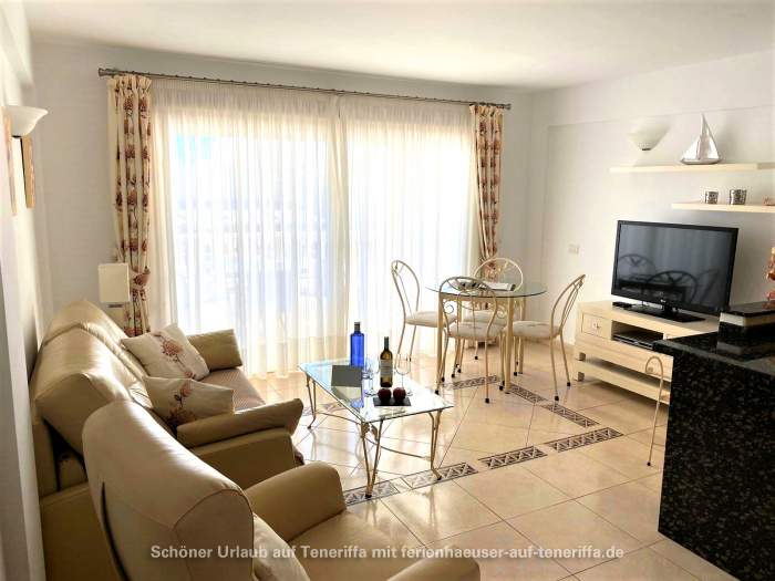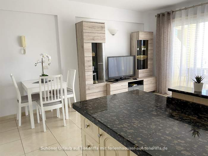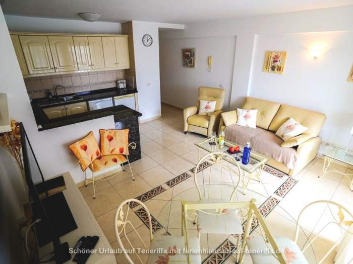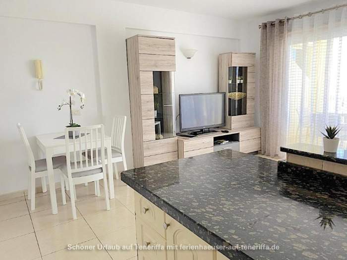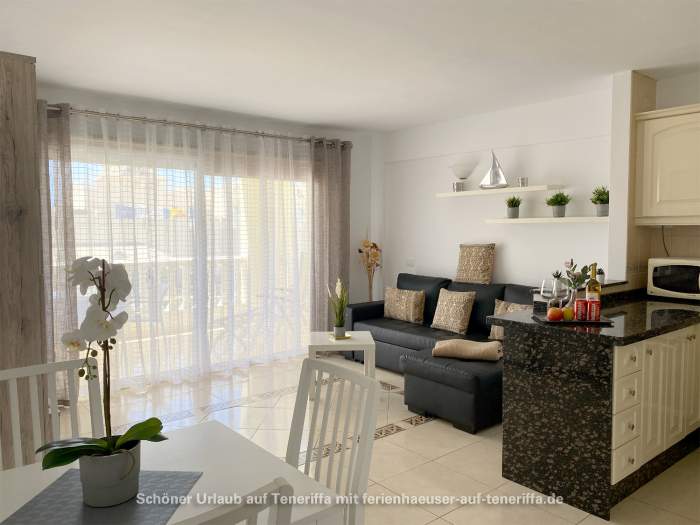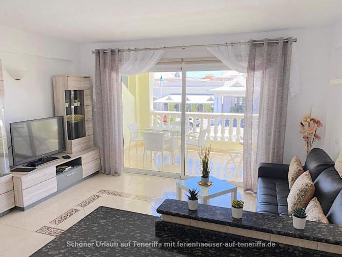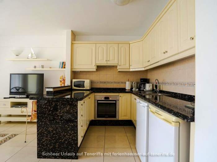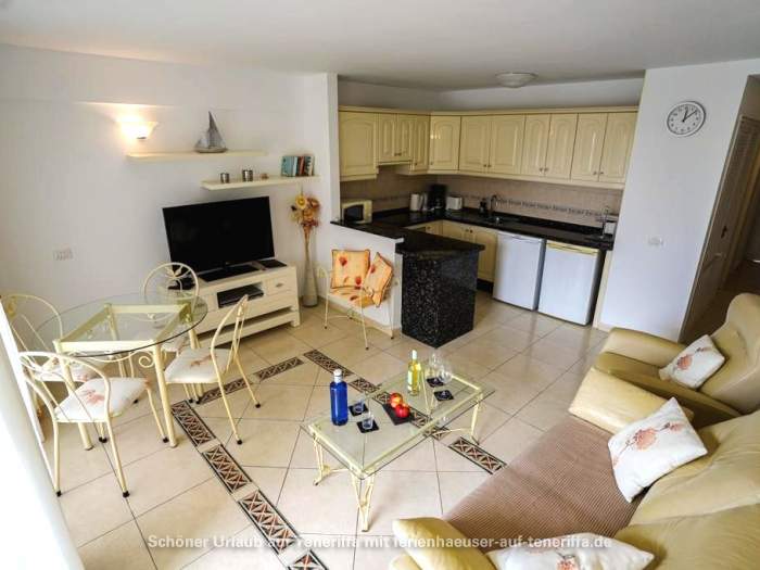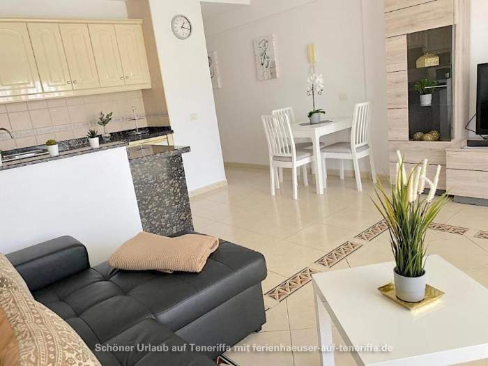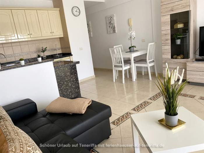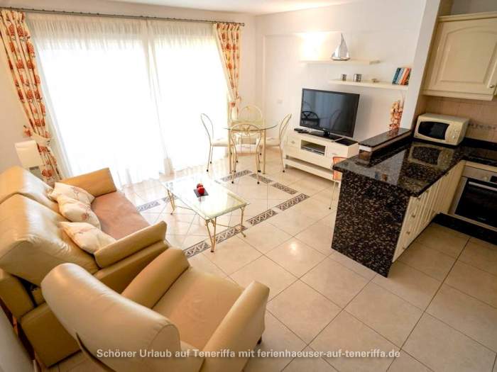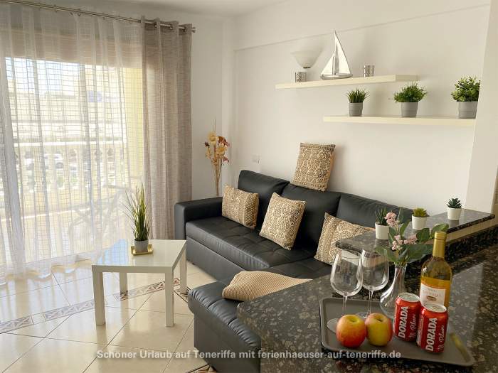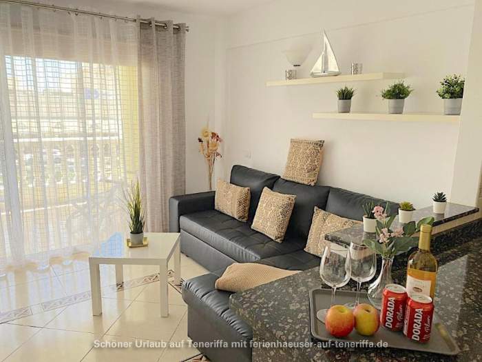 Genießen Sie Ihren Urlaub in diesem bestens ausgestatteten Apartment, das sich in einer gepflegten Wohnanlage im zweiten Stock befindet und über einen Aufzug verfügt. Das Objekt liegt in einer erstklassigen Lage im beliebten Golf del Sur an der Südküste der Gemeinde San Miguel auf Teneriffa. Innerhalb weniger Minuten gelangen Sie entlang der malerischen Promenade zu einem Yachthafen, der mit Cafés, Bars und Restaurants gesäumt ist und einen herrlichen Blick auf das Meer bietet. Trotz der überwiegend ganzjährig warmen Temperaturen und der damit verbundenen kargen Vegetation beeindruckt der Ort durch zahlreiche Grünflächen und von Palmen gesäumte Straßen. Besonders attraktiv sind die beiden Golfplätze, Golf del Sur und Amarilla Golf, die regelmäßig viele Golfenthusiasten anziehen.