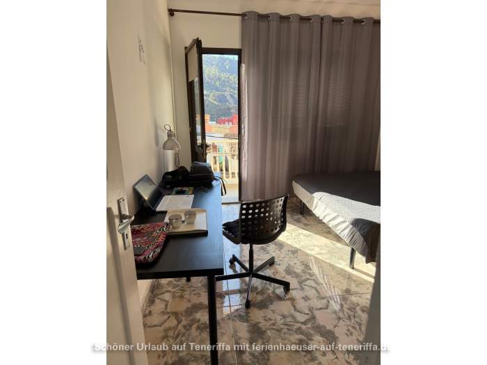 - Ein Schlafzimmer mit einem Doppelbett (1,50 × 2 m) und einem Schreibtisch – ideal für Urlaub, bei dem auch Arbeit erledigt werden kann