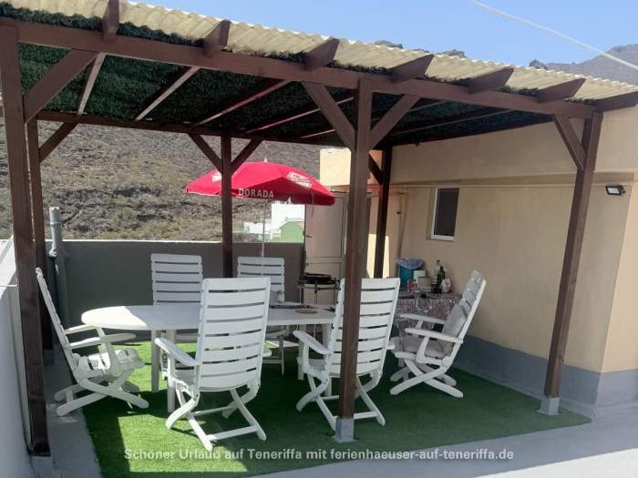 Die großzügige Terrasse lädt zu unvergesslichen Momenten ein, während man den spektakulären 360º-Panoramablick auf die umliegenden Berge sowie auf La Gomera und La Palma genießt. Dieser Ort ist ideal, um den Sonnenuntergang zu bewundern, ein Glas Wein zu genießen oder einfach nur die Seele baumeln zu lassen, abseits der Touristenströme.