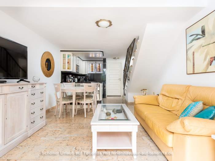 Diese stilvolle und helle Ferienwohnung befindet sich in einer außergewöhnlichen Lage im beliebten Playa de las Américas im sonnigen Südwesten Teneriffas. Vom Wohnzimmer und der großen Terrasse aus genießen Sie einen beeindruckenden Blick auf das Meer, der Sie während des gesamten Urlaubs begleitet.