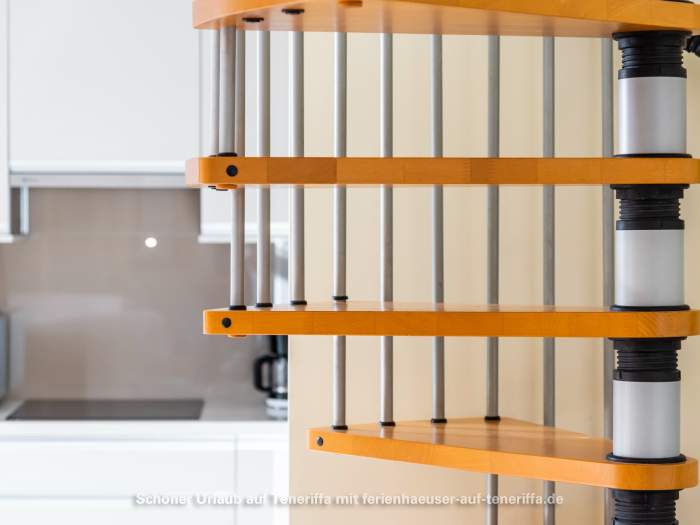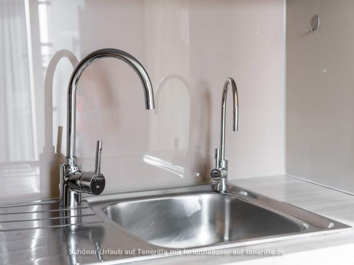 Die moderne Küche ist vollständig ausgestattet, inklusive Backofen, Herd mit vier Platten, Kühlschrank mit Gefrierfach und weiteren praktischen Geräten. Eine Geschirrspülmaschine sorgt für komfortablen Service während des Urlaubs.