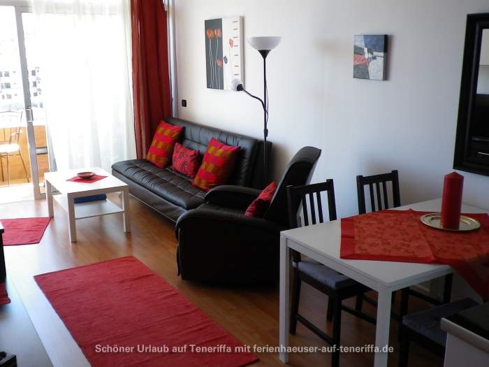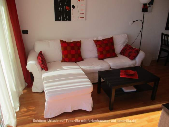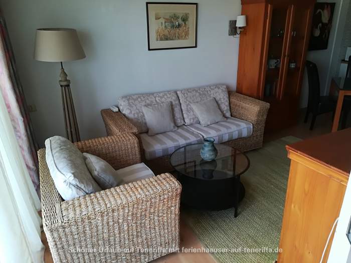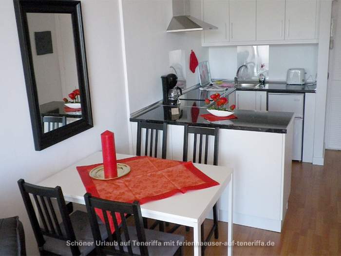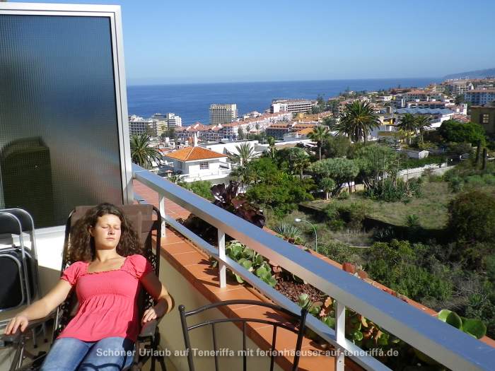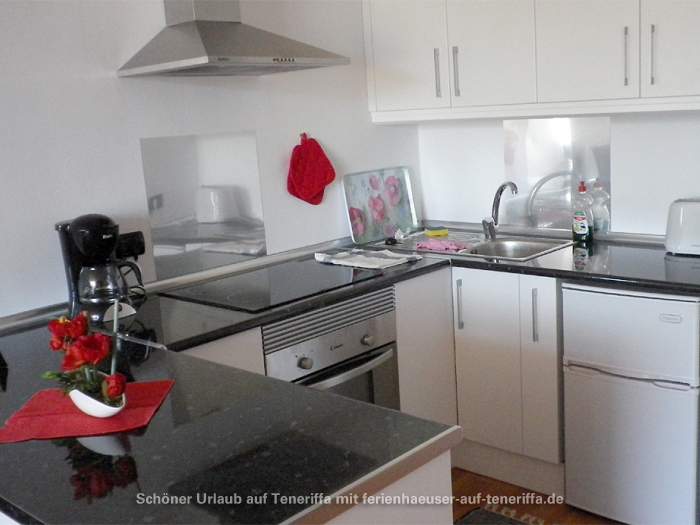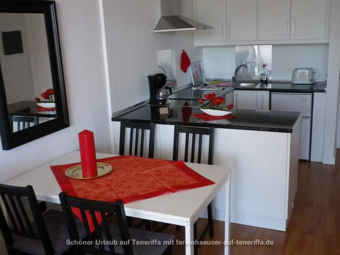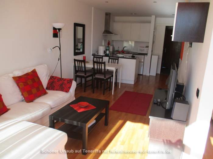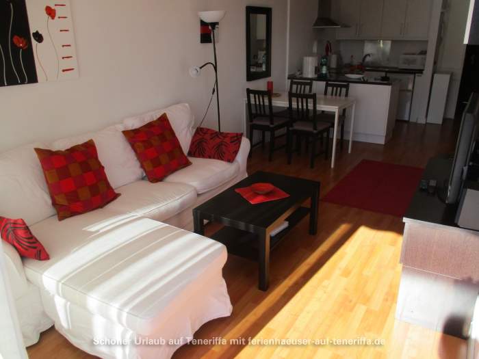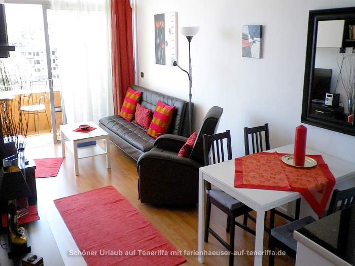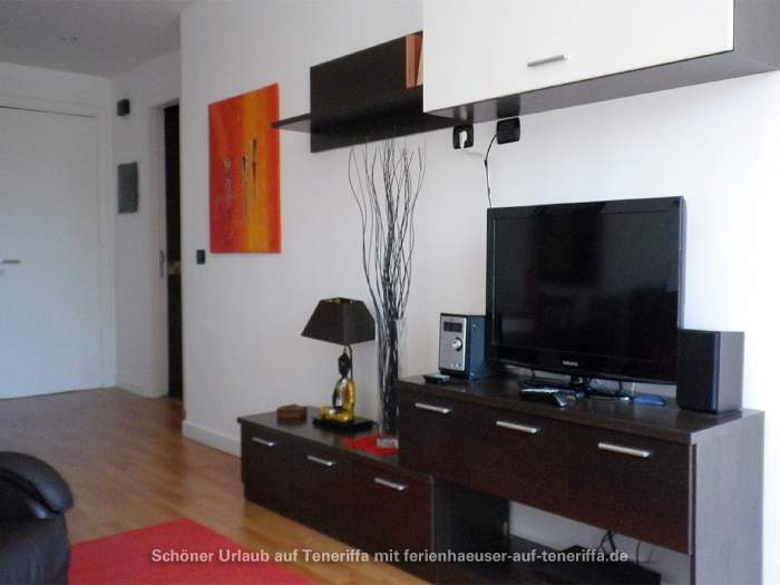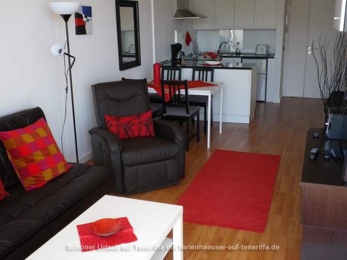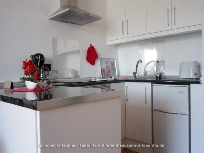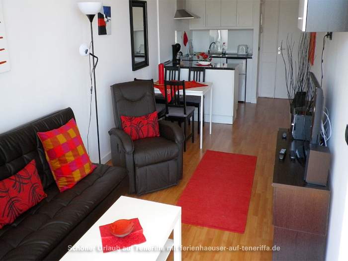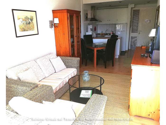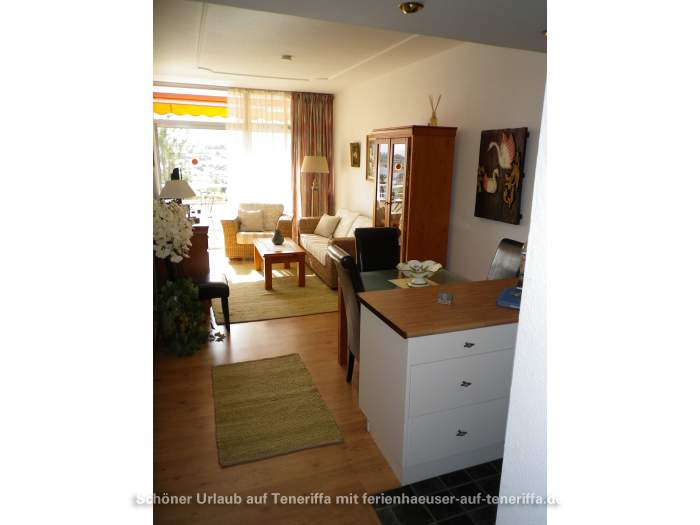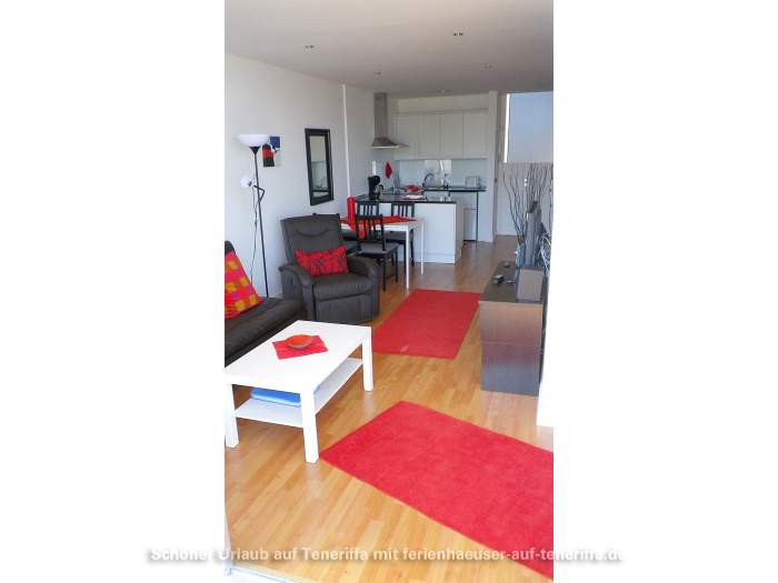 Die 58 m² große Ferienwohnung ist modern und stilvoll eingerichtet. Sie besteht aus einem Wohnraum mit Flur, einem Badezimmer, einem Wohnzimmer, einer offenen Küche und einem Schlafzimmer. Die Terrasse, die mit ansprechendem Mobiliar ausgestattet ist, bietet einen herrlichen Blick auf das Meer, das Orotava-Tal und den Park und lädt zu entspannten Stunden im Freien ein.