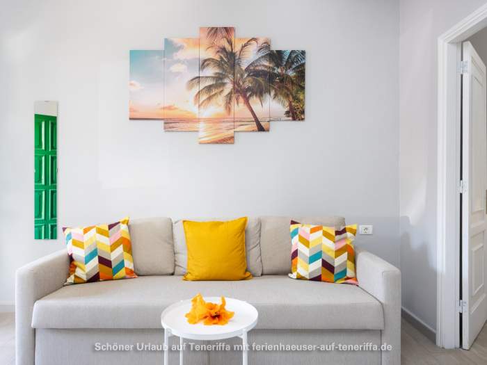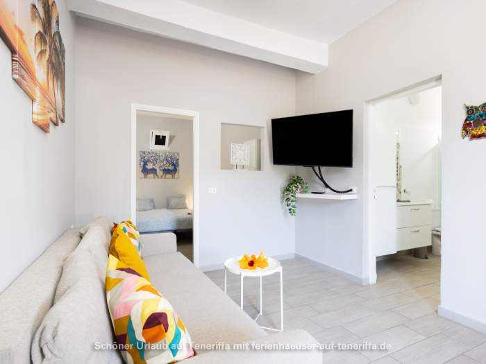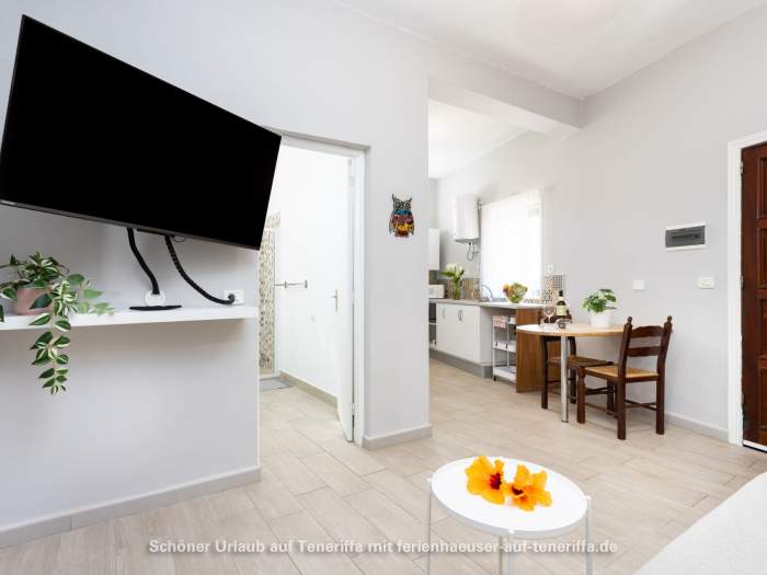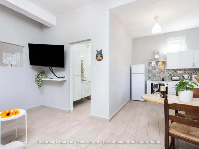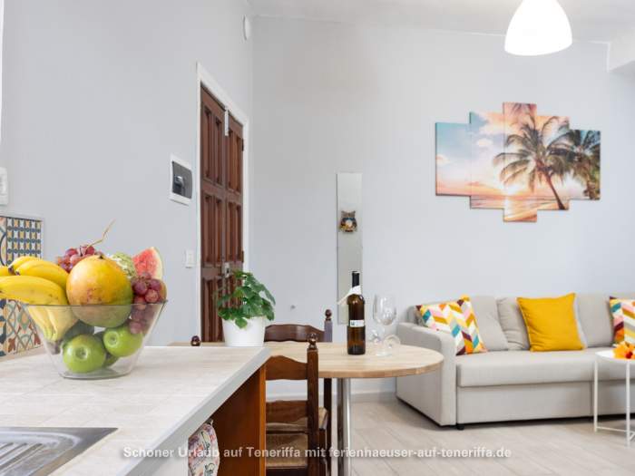 Von der Terrasse aus eröffnet sich je nach Lage ein weiter Blick auf das Meer oder auf den imposanten Teide, der mit seinen 3.718 Metern majestätisch über der Insel thront. Sowohl in der Wohnung als auch auf der Terrasse steht WLAN zur Verfügung, sodass sich Entspannung und digitale Erreichbarkeit mühelos verbinden lassen.