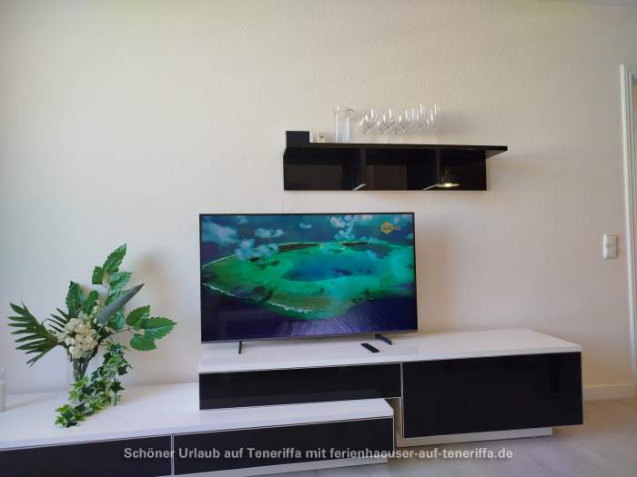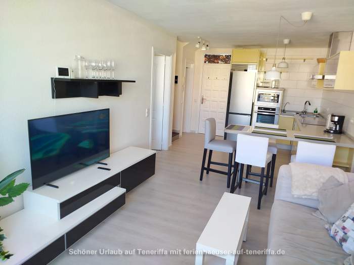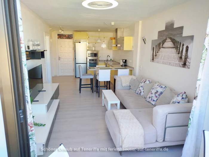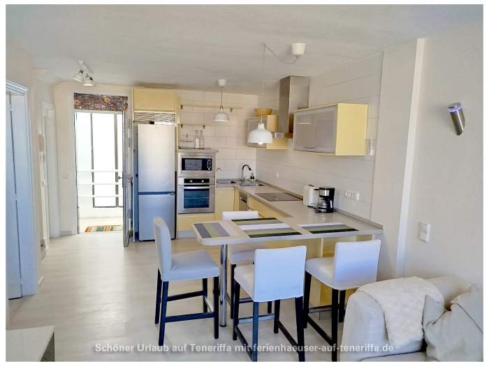 Der Wohnraum ist mit einem gemütlichen Sofa, Smart-TV (47 Zoll), Glasfaser-WLAN und einer hochwertigen offenen Küche ausgestattet. Diese verfügt über Backofen, Geschirrspüler, Trinkwasserfilter, Mikrowelle, Pürierstab, Fritteuse, Nespresso-Maschine und vieles mehr. Fahrräder sowie Kite-, Surf- und Windsurfausrüstung können am eigenen Parkplatz oder im Auto gelagert werden; in der Wohnung ist dies strengstens untersagt.