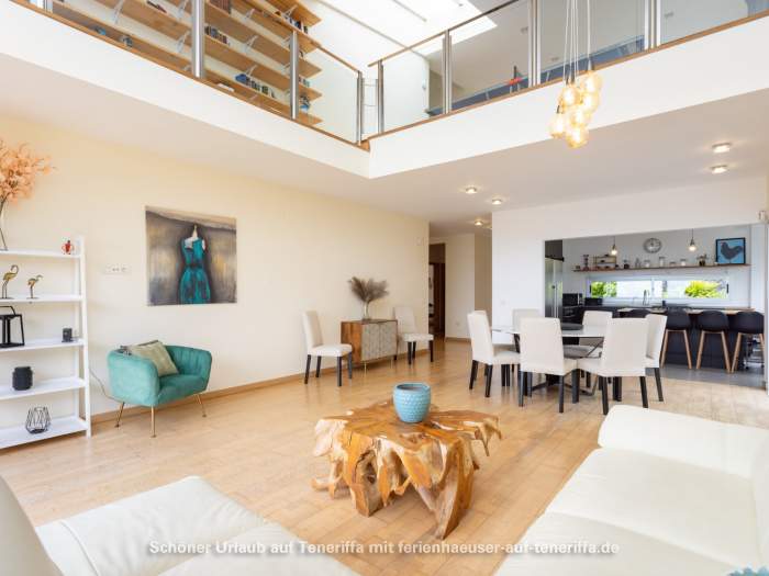 Der Außenbereich ist ein echtes Highlight: Ein gepflegter Garten, ein einladender Pool mit Meerblick und ein Balkon mit gemütlichem Sitzbereich machen es leicht, die Sonne und die Ruhe Teneriffas in vollen Zügen zu genießen. Ob beim morgendlichen Kaffee mit Blick auf den Atlantik oder beim entspannten Ausklang des Tages – dieser Ort bietet unvergessliche Momente.